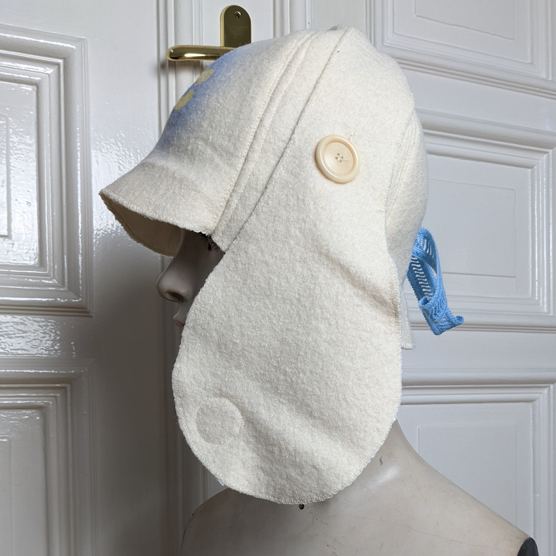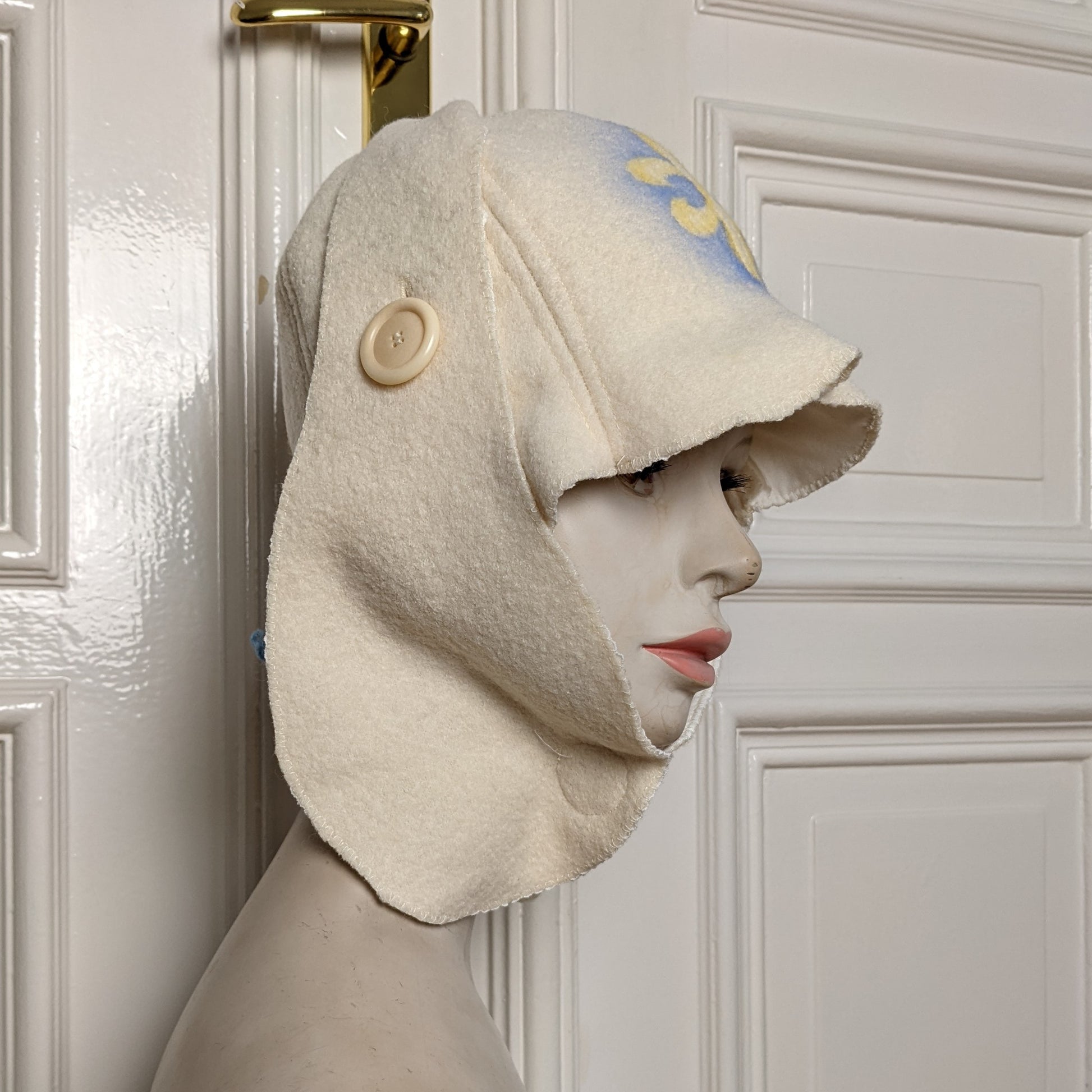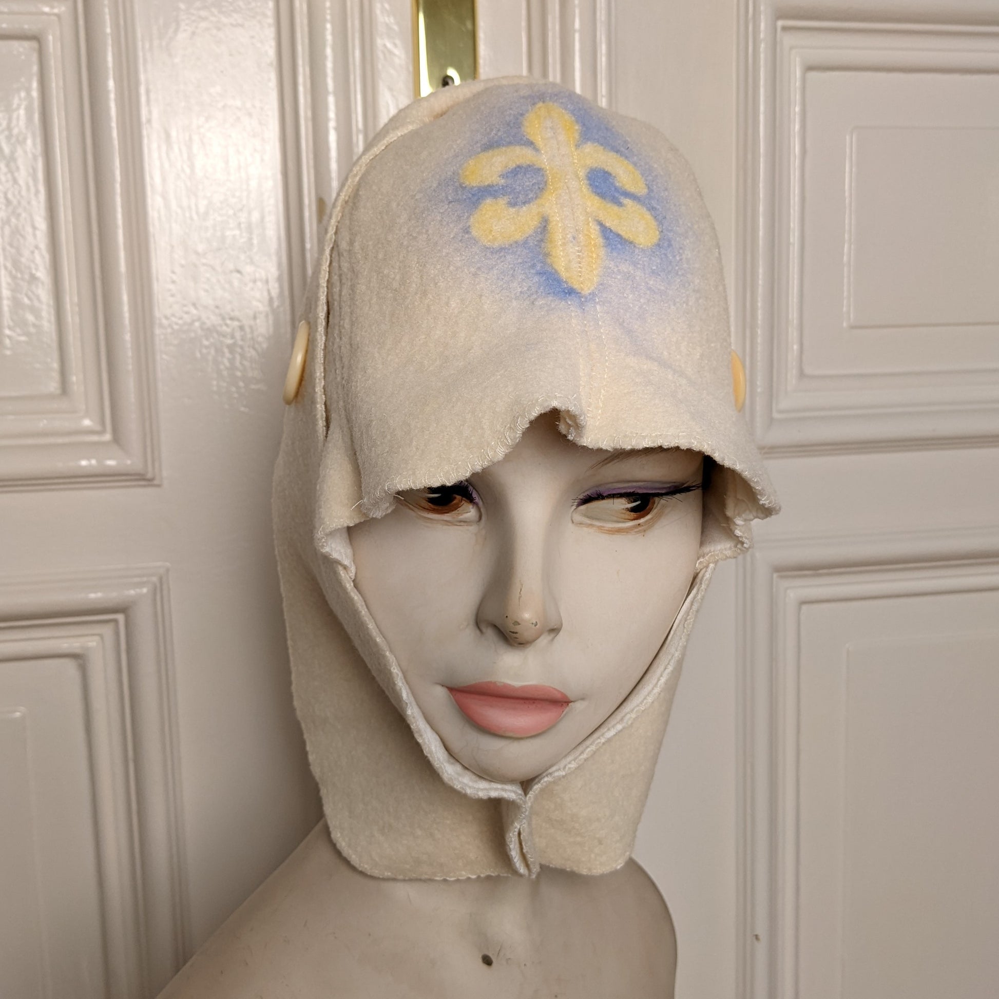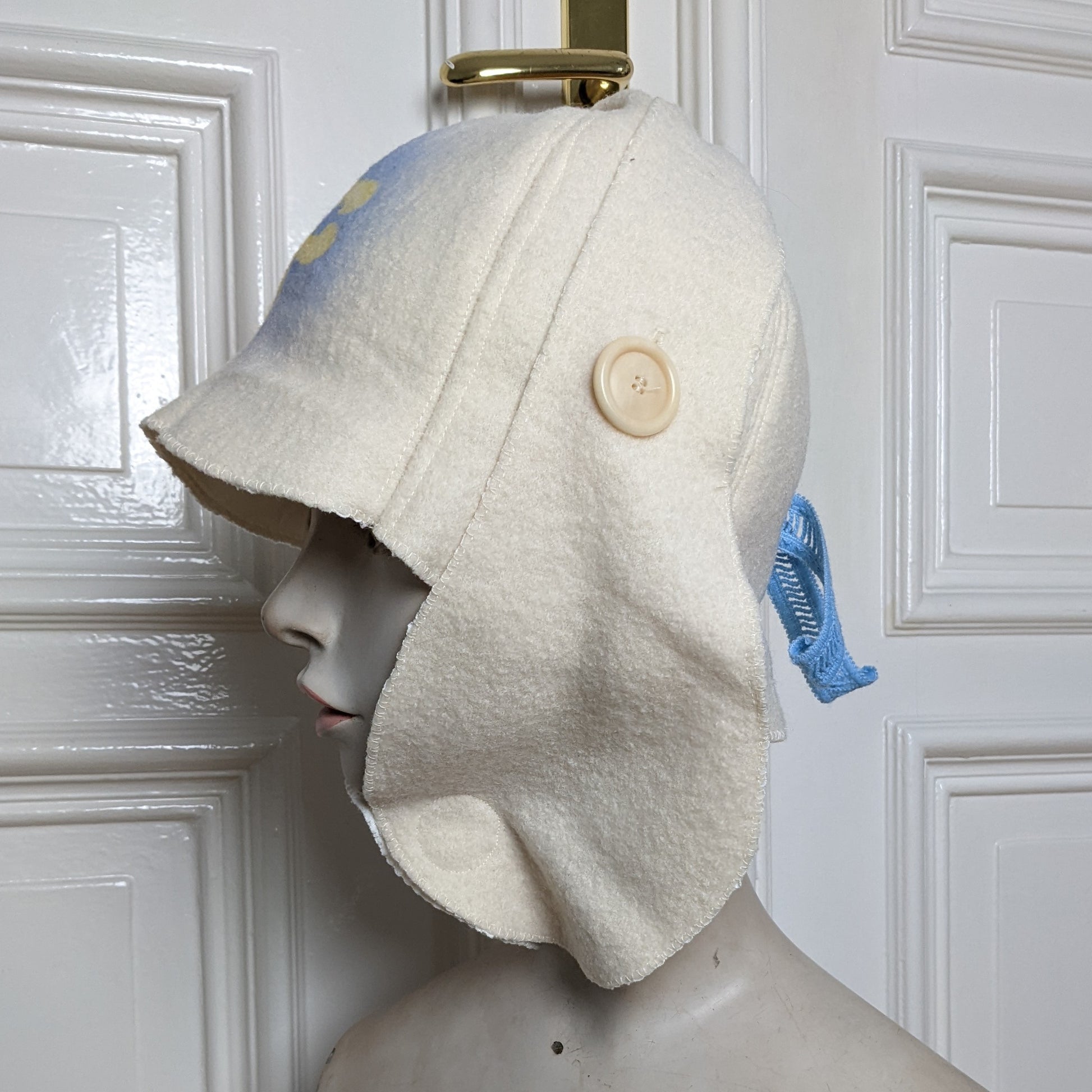 ꒰⑅ᵕ༚ᵕ꒱˖♡ Painted orchid bonnet made from virgin wool. ♡˖꒰ᵕ༚ᵕ⑅꒱