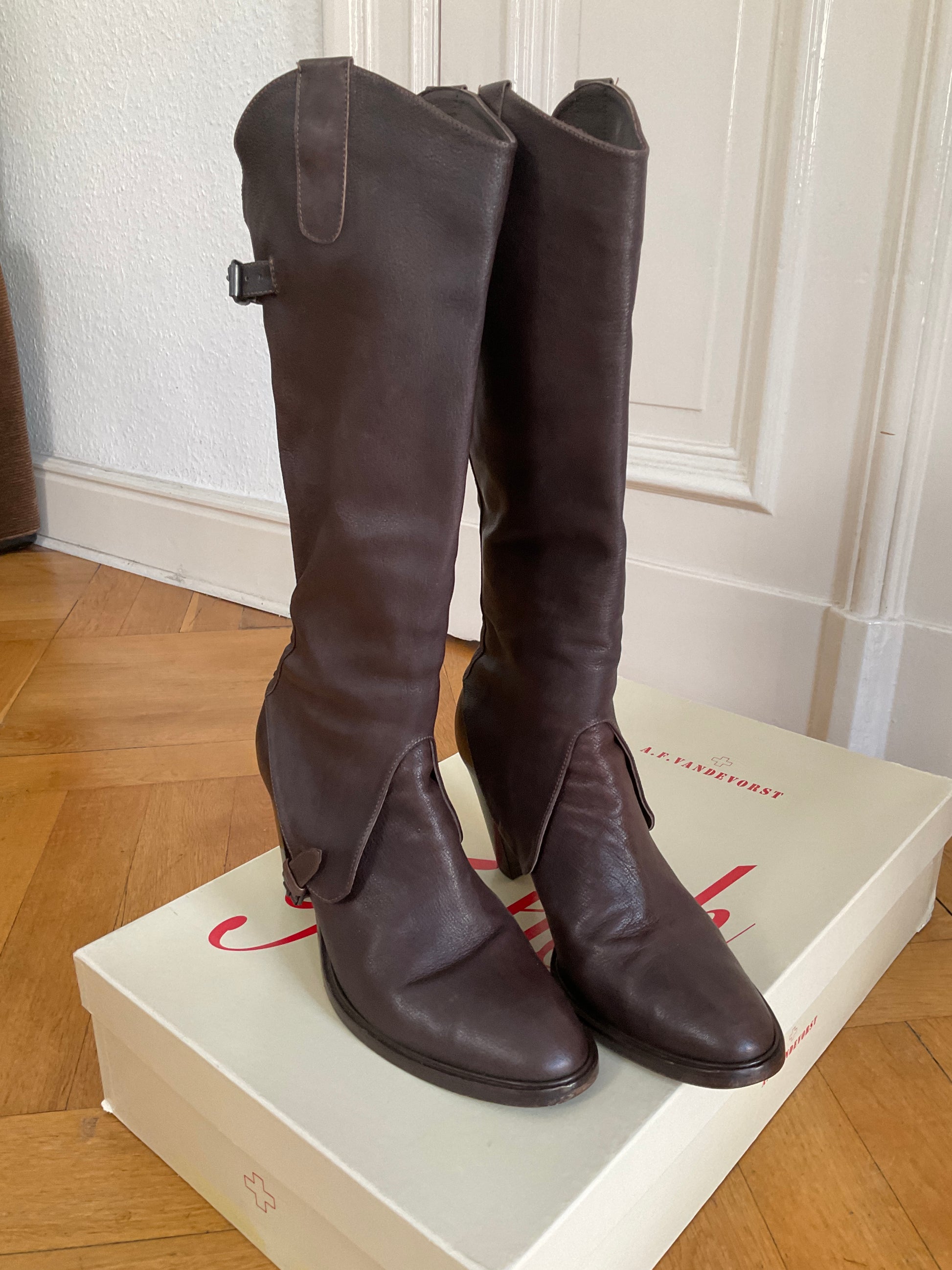 Brown horse riding boots from A.F. Vandevorst, Spring Summer 2001 Ready to wear collection.