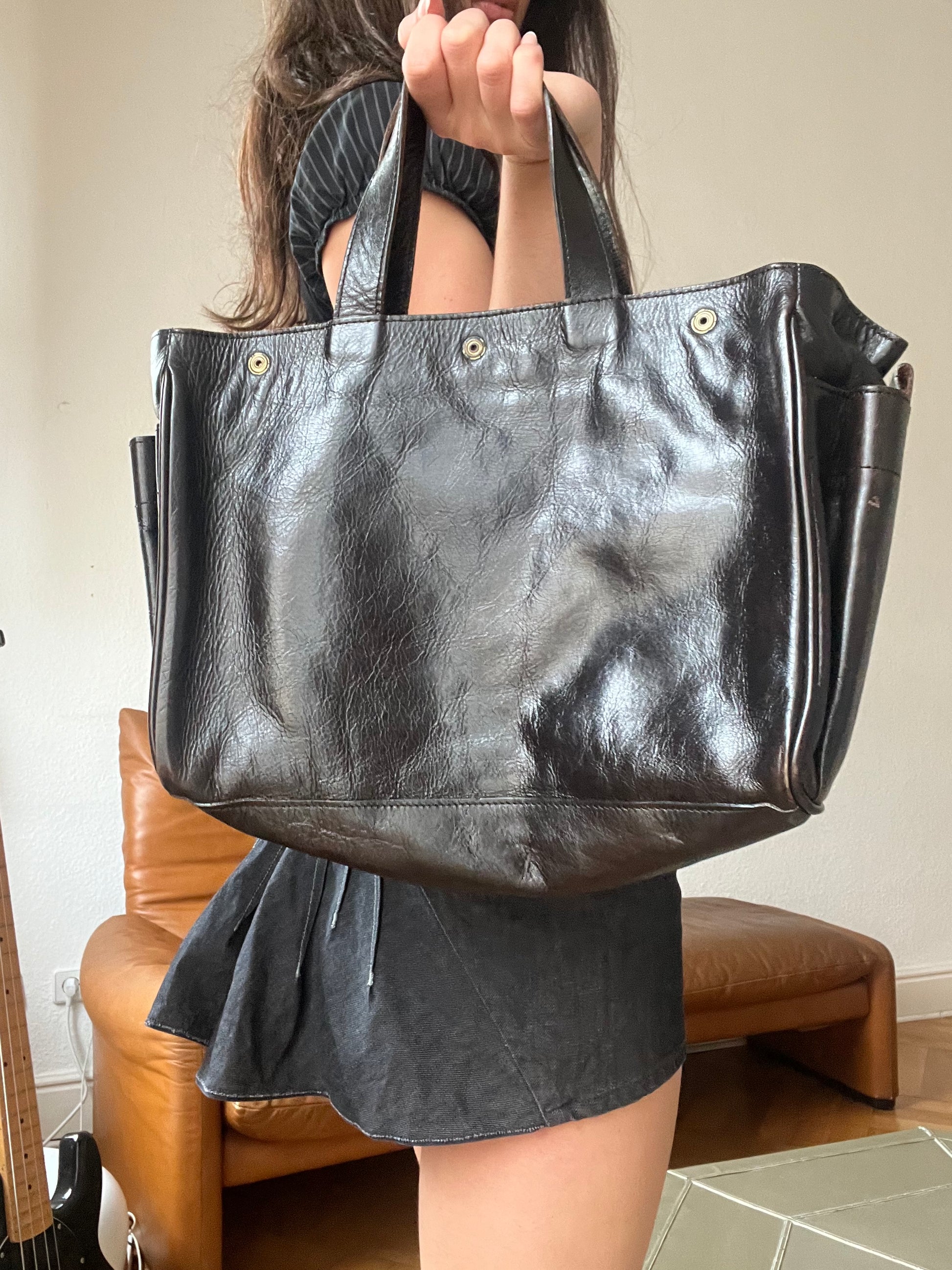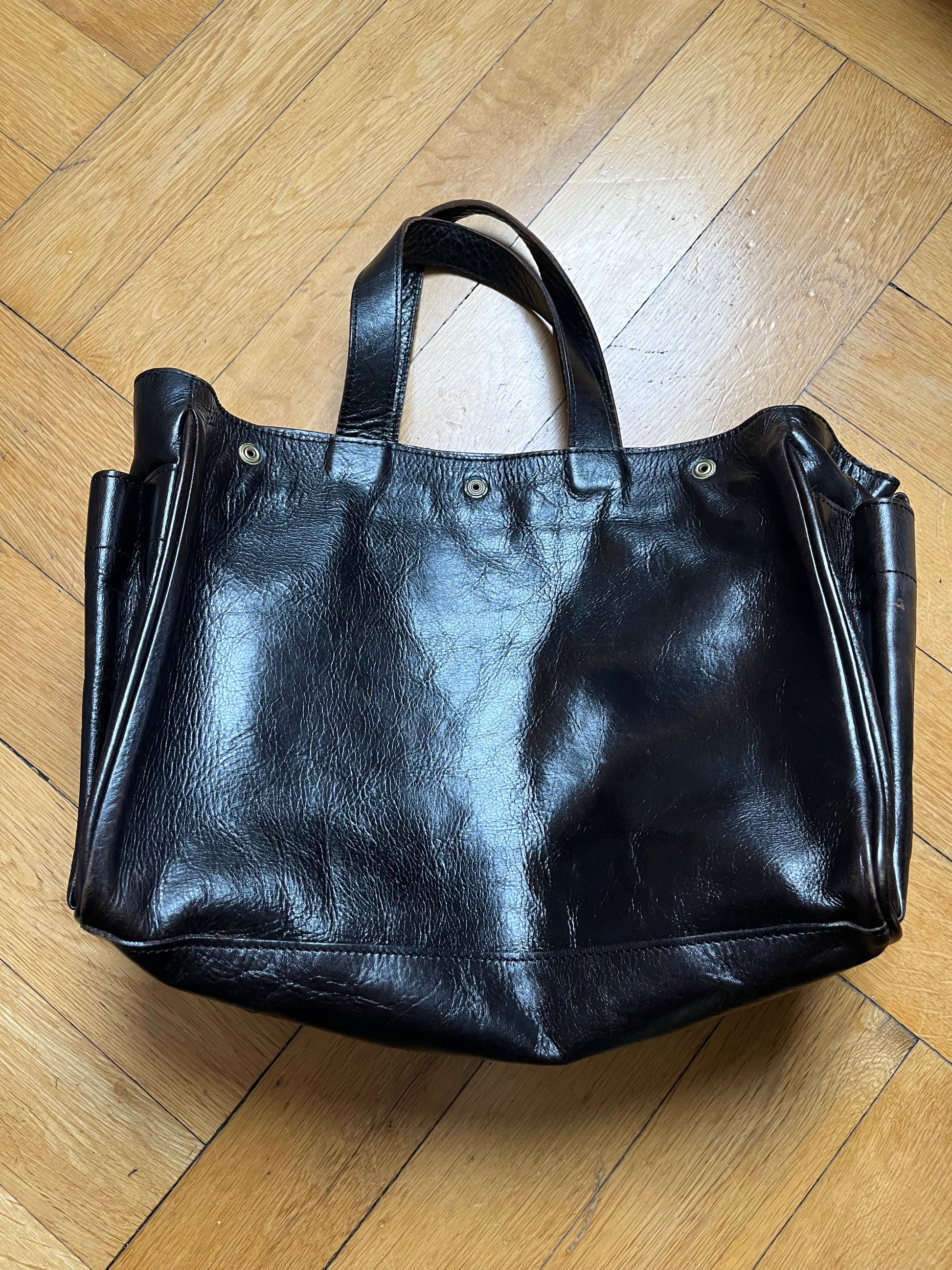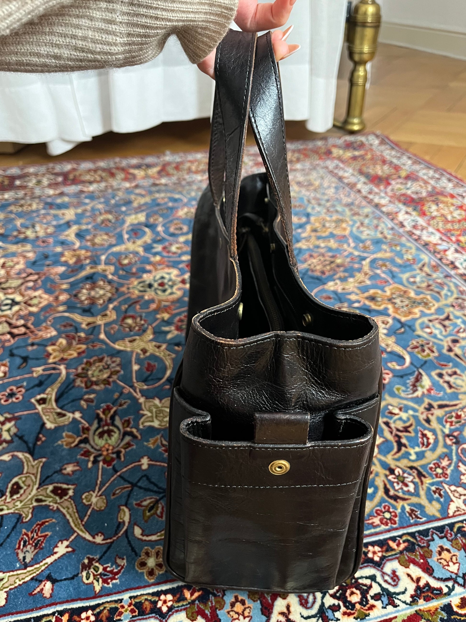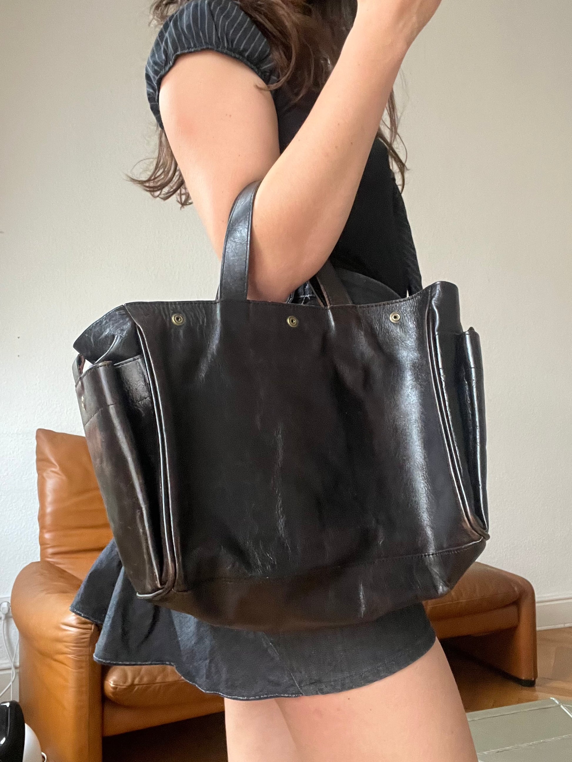 Leather handbag from Zucca. 2 outside pockets 3 inside pockets,