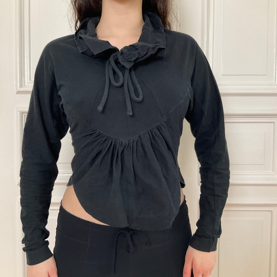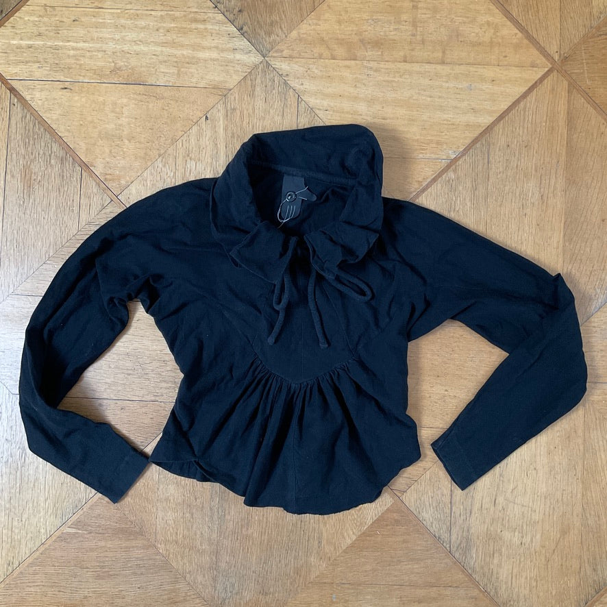 Cute black longsleeve with collar from Bernhard Willhelm. From the 2008 A/W Women's collection: http://www.bernhardwillhelm.com/collections/detail/a-w-08-09/