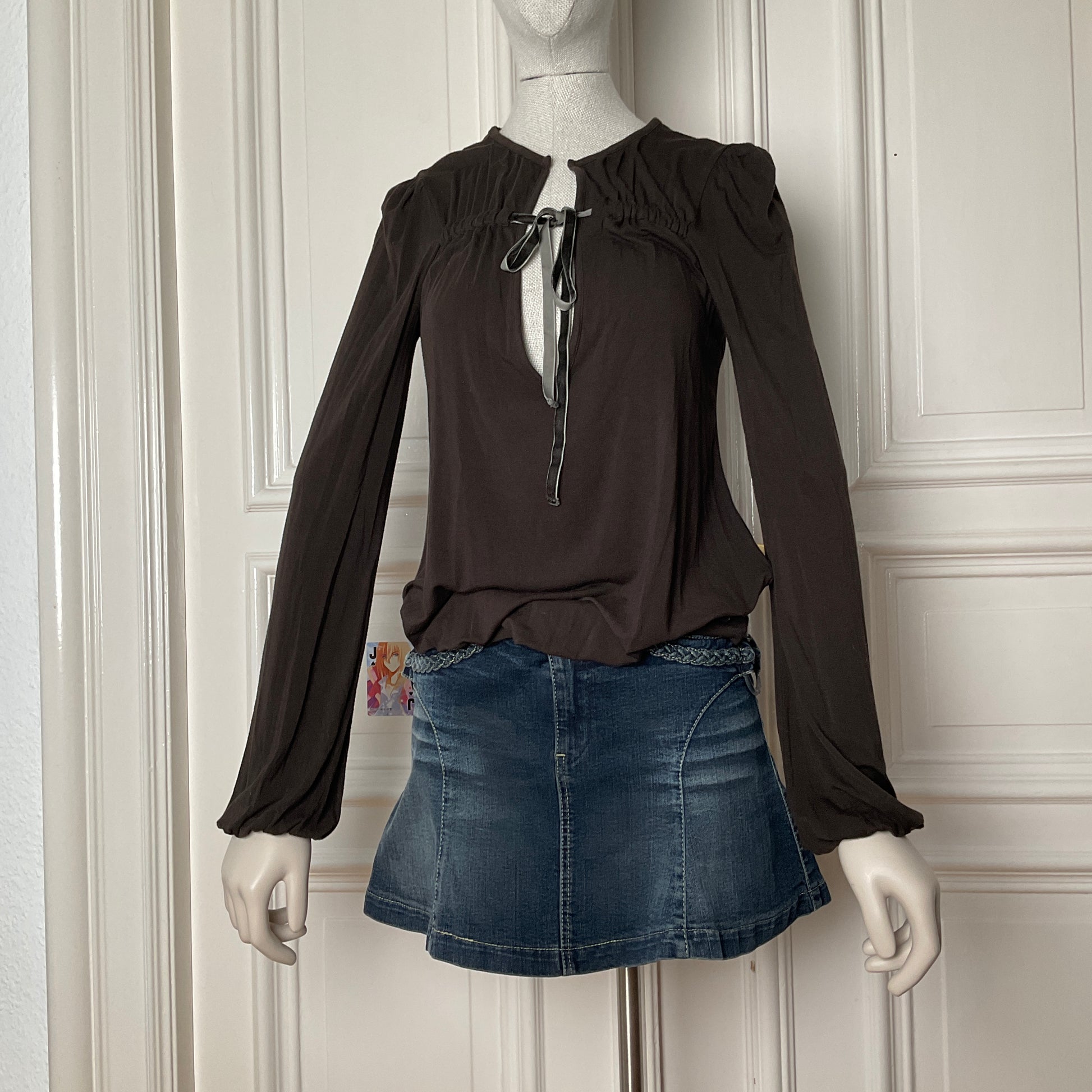 90s longsleeve with gathering in the front and velvet bow.