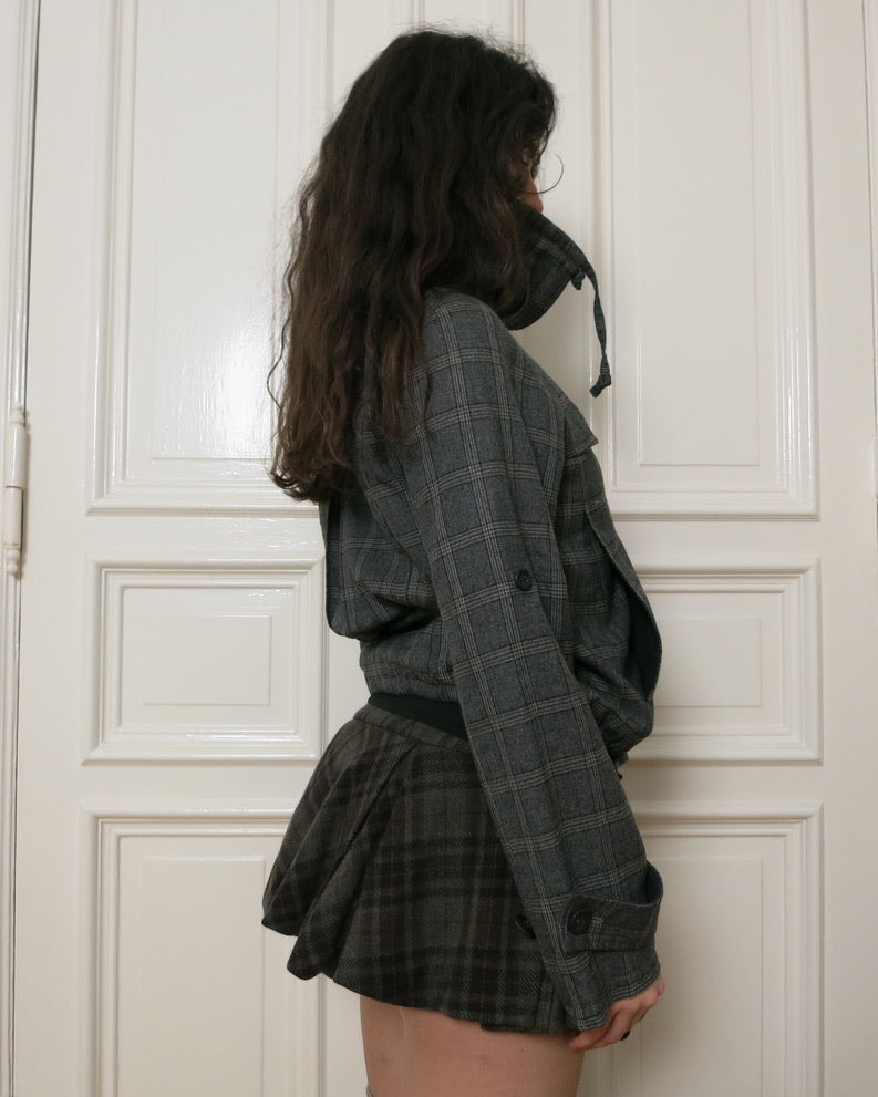 Main fabric 99% wool, 1% polyurethane. Lining 65% polyester, 35% rayon.