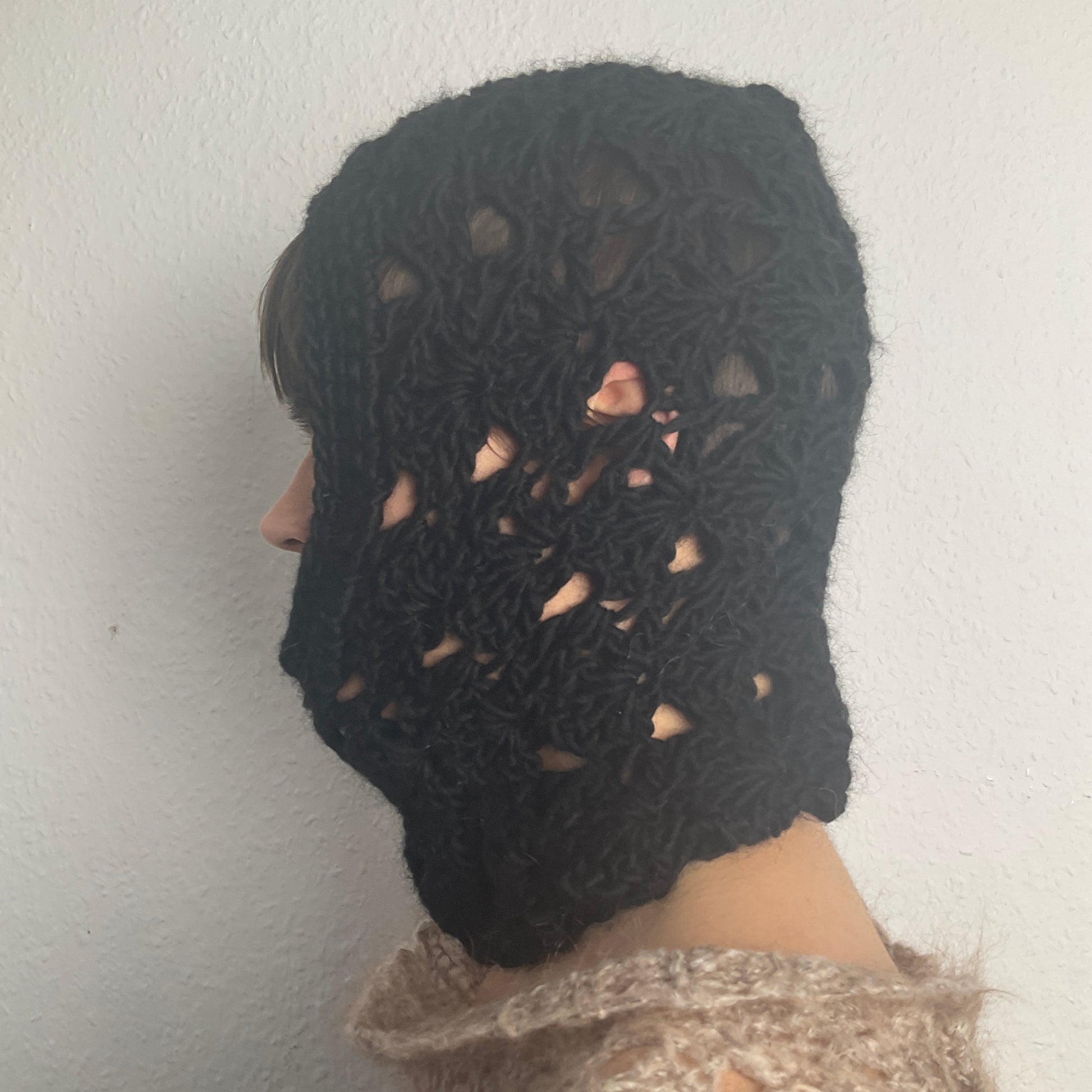 Cocoon nr. 1 crochet balaclava in black. Handmade in Berlin by @modde_studio.
