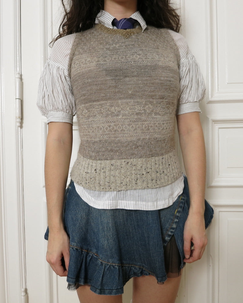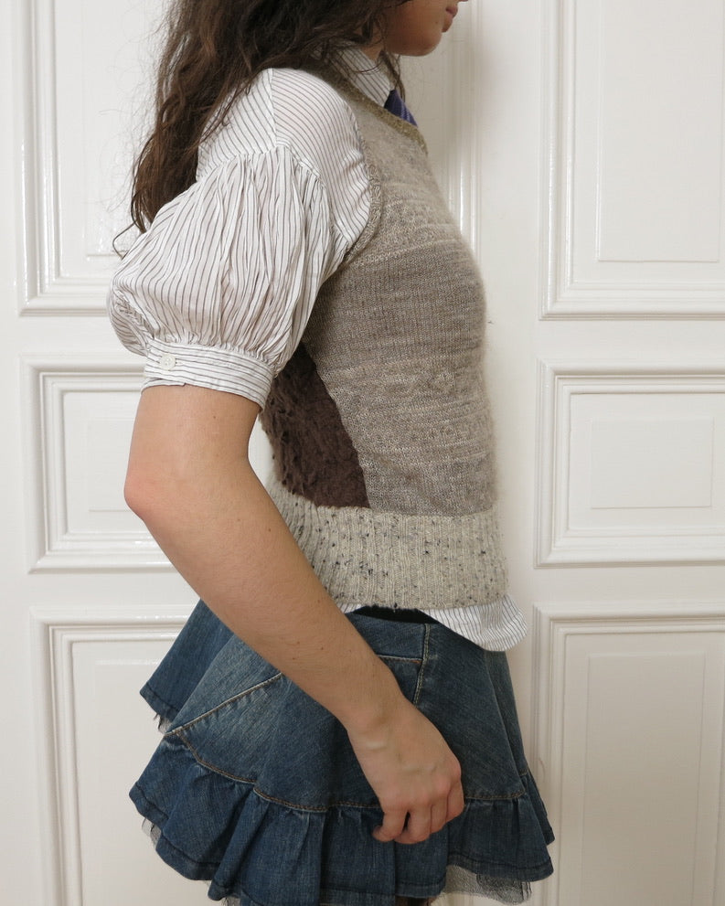 Cosmic Wonder Light Source vest. 75% wool, 12% linen, 7% kid mohair, 6% nylon.