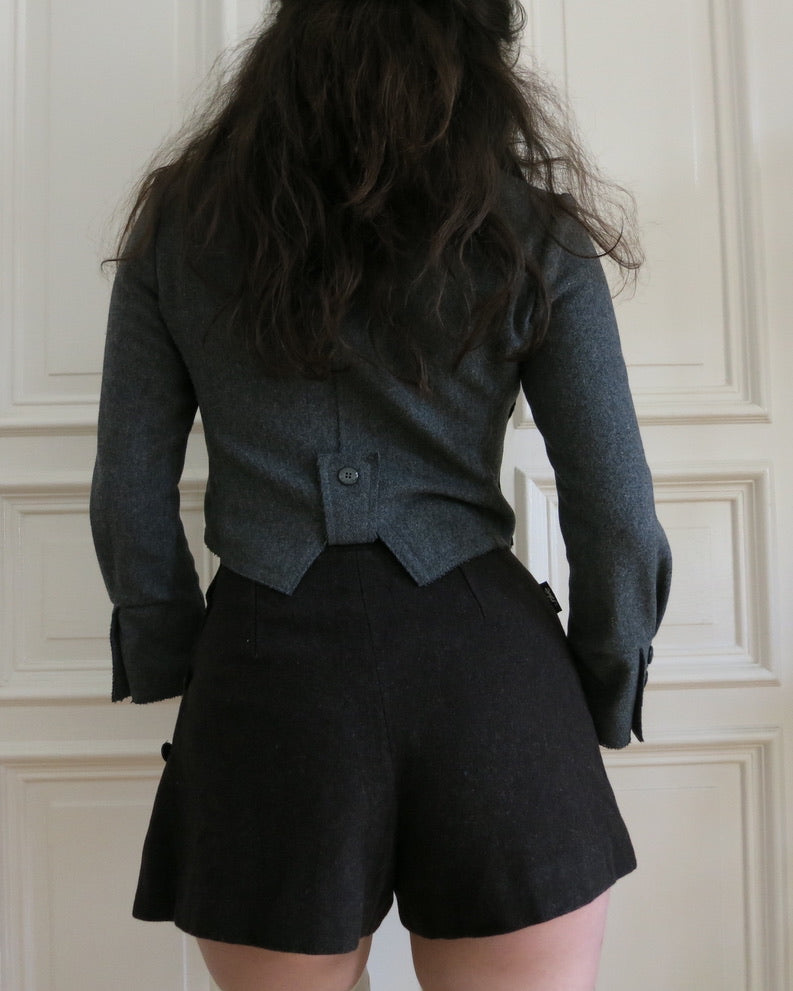 55% wool, 25% lambswool, 20% nylon. Lining 60% acetate, 40% nylon.