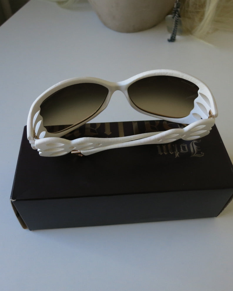 White sunglasses from John Galliano, with nice gradient lenses. Light weight textured material.