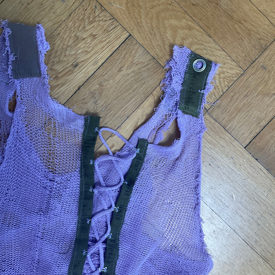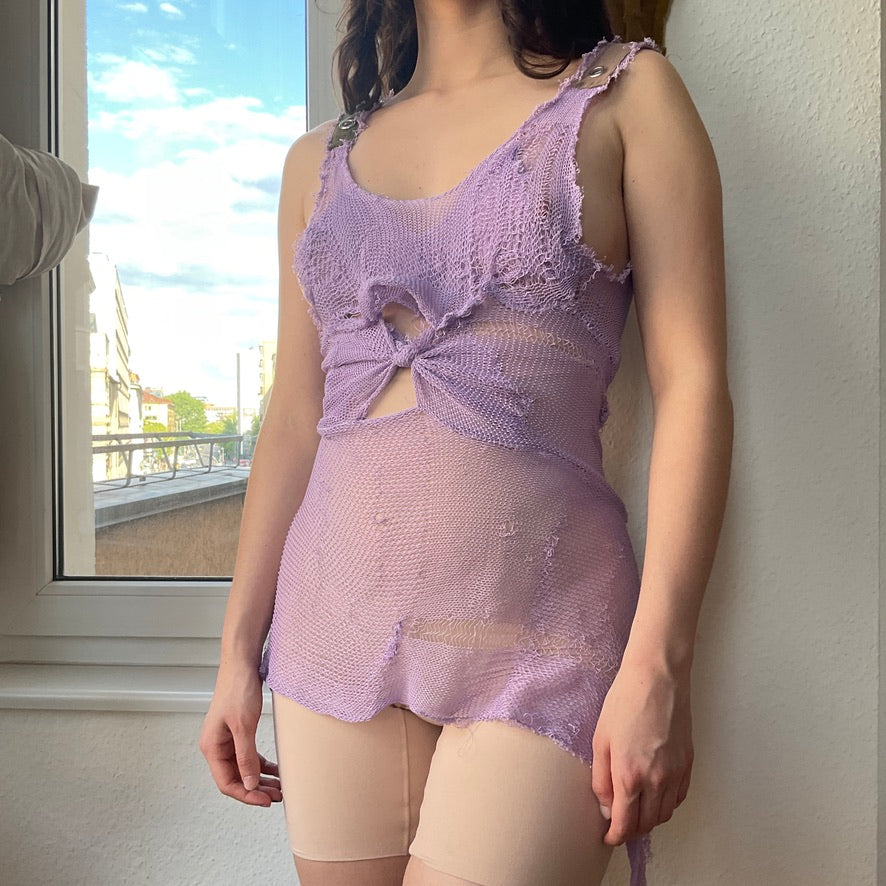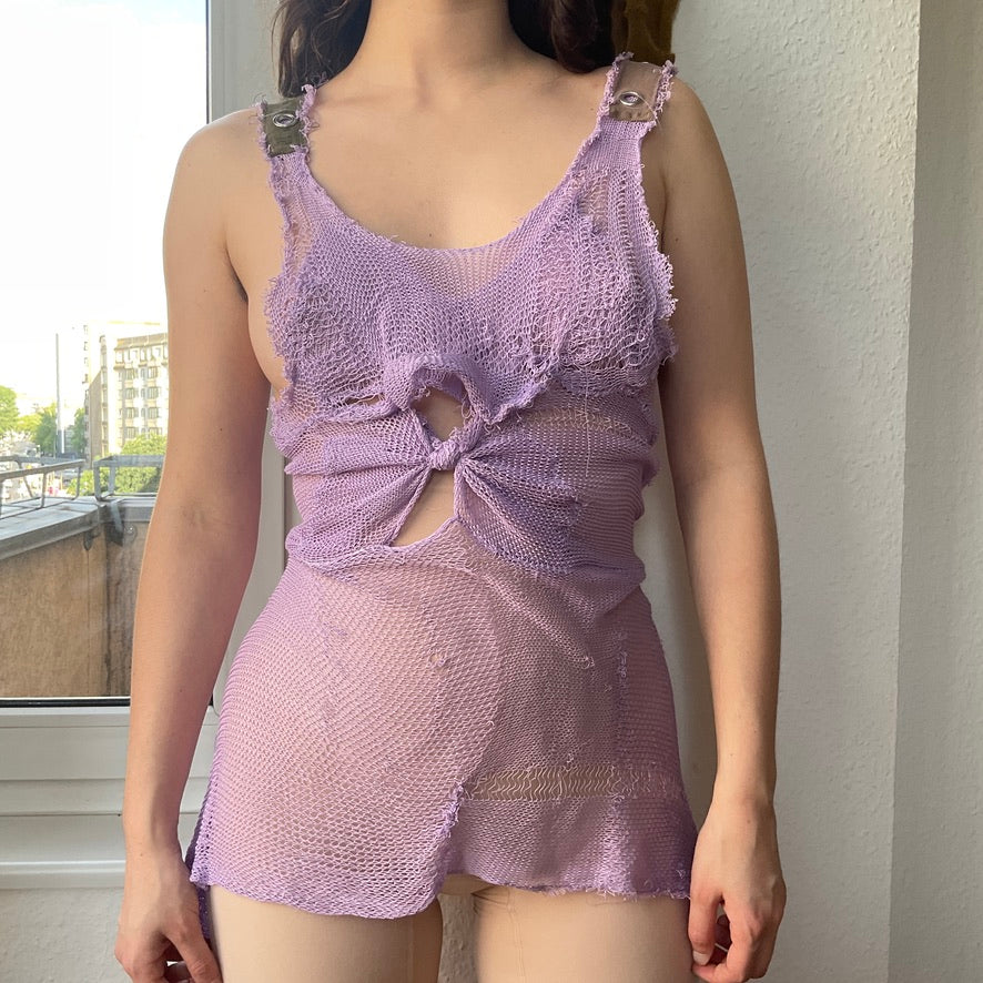 Handmade on a domestic knitting machine. Made of second hand cotton yarn.