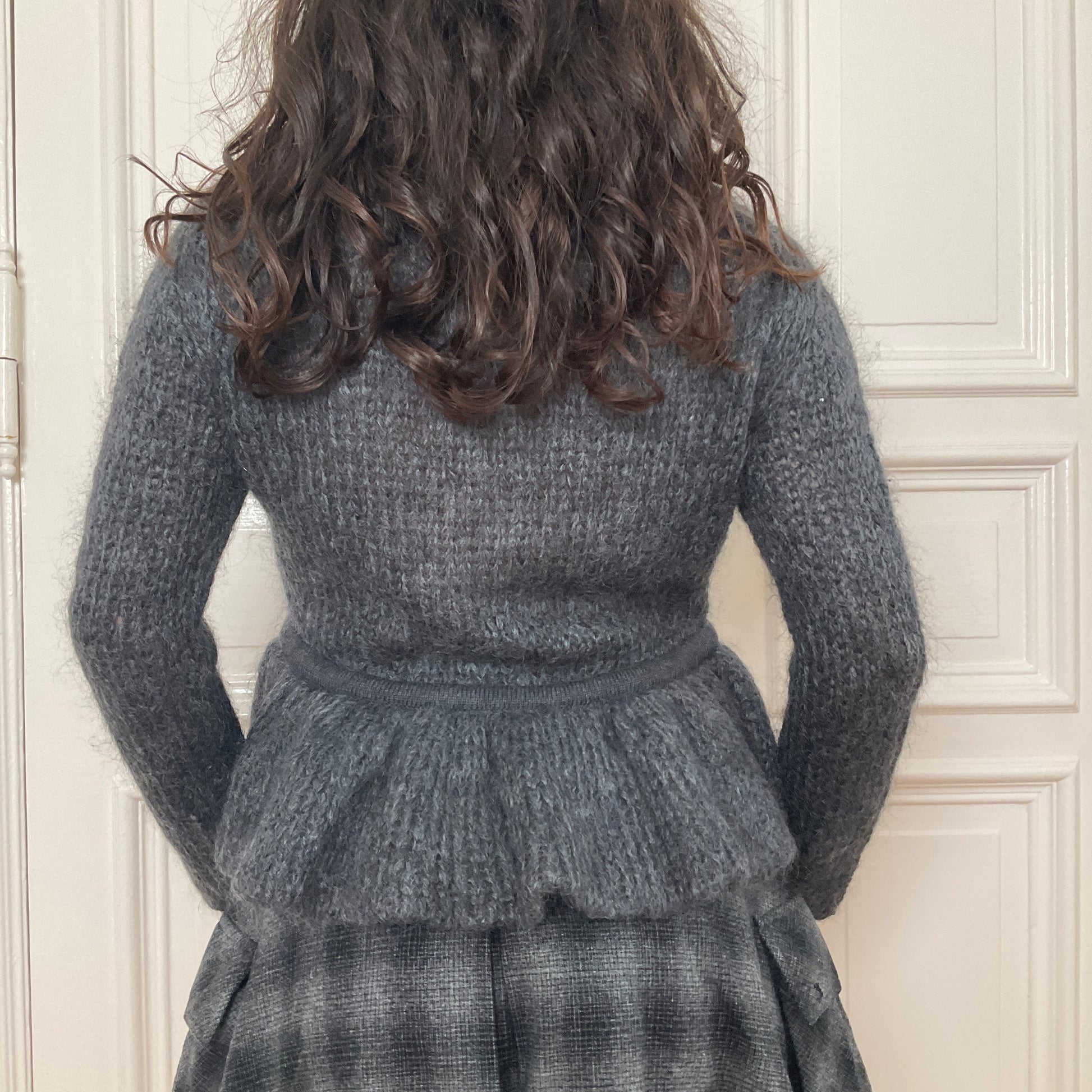 Grey knit cardigan with ruffle hem from Limi Feu.