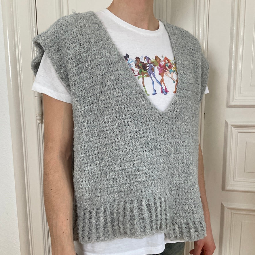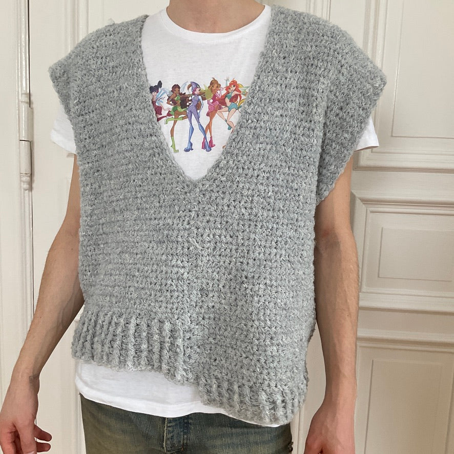 Asymmetrical crochet vest. Handmade in Berlin by mođđe studio.