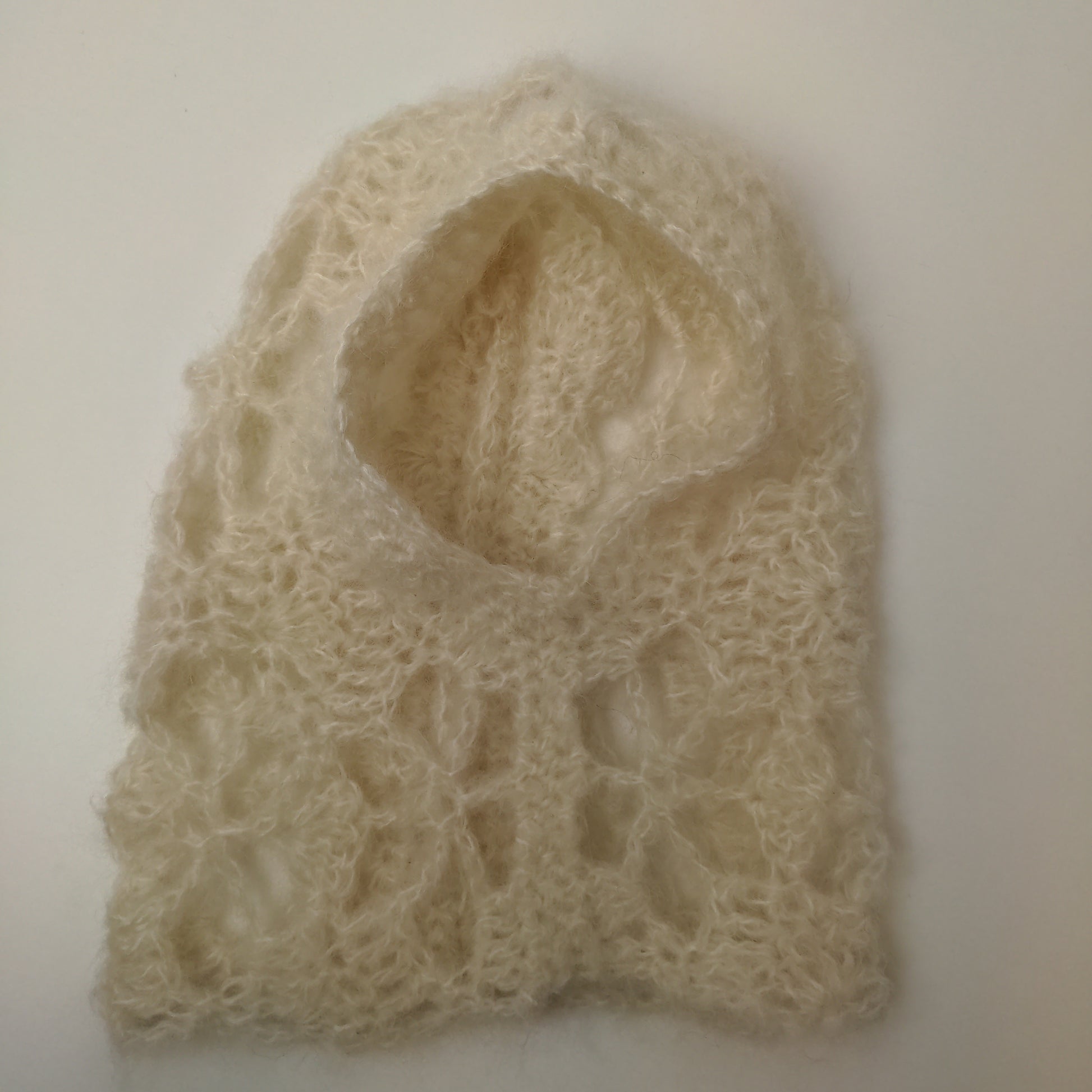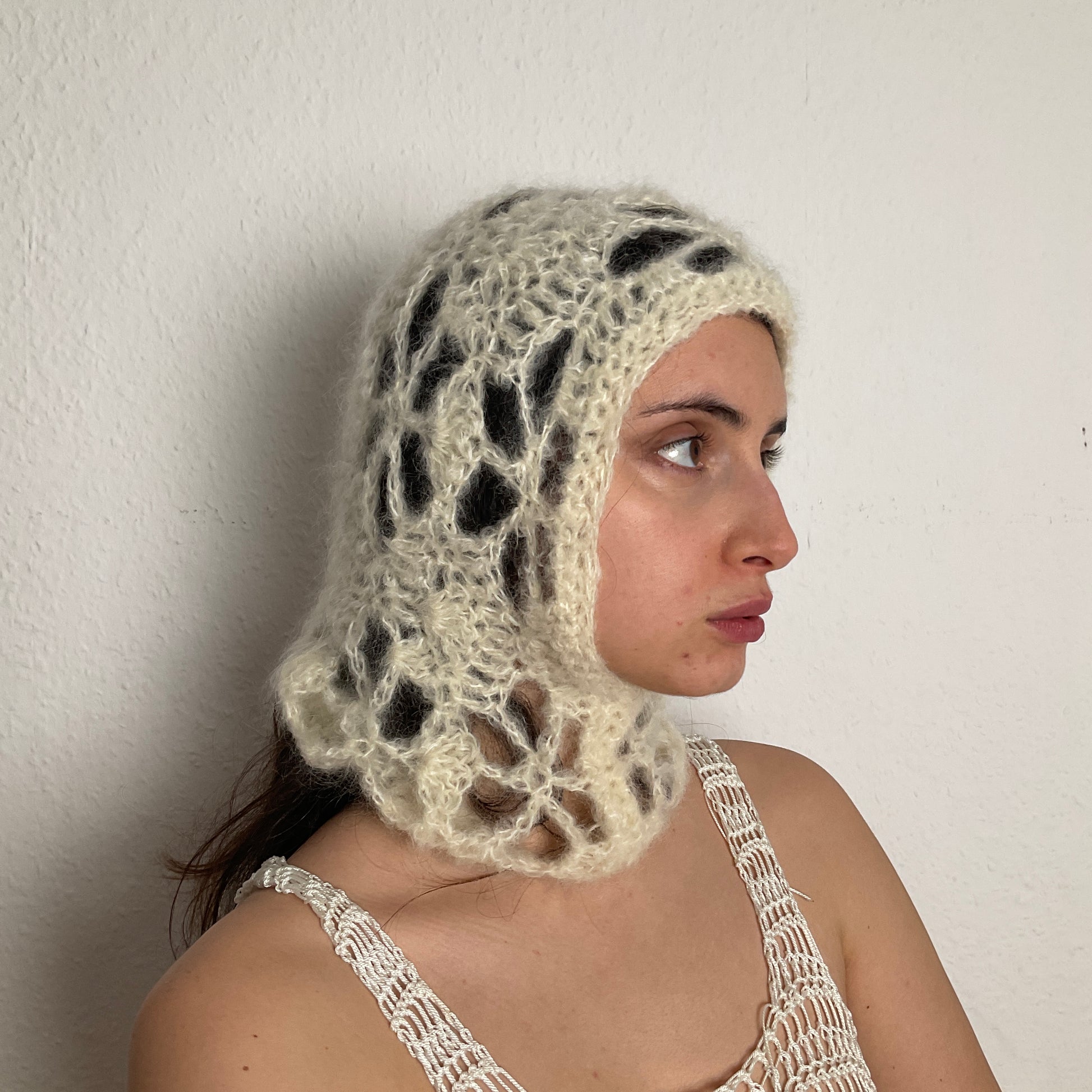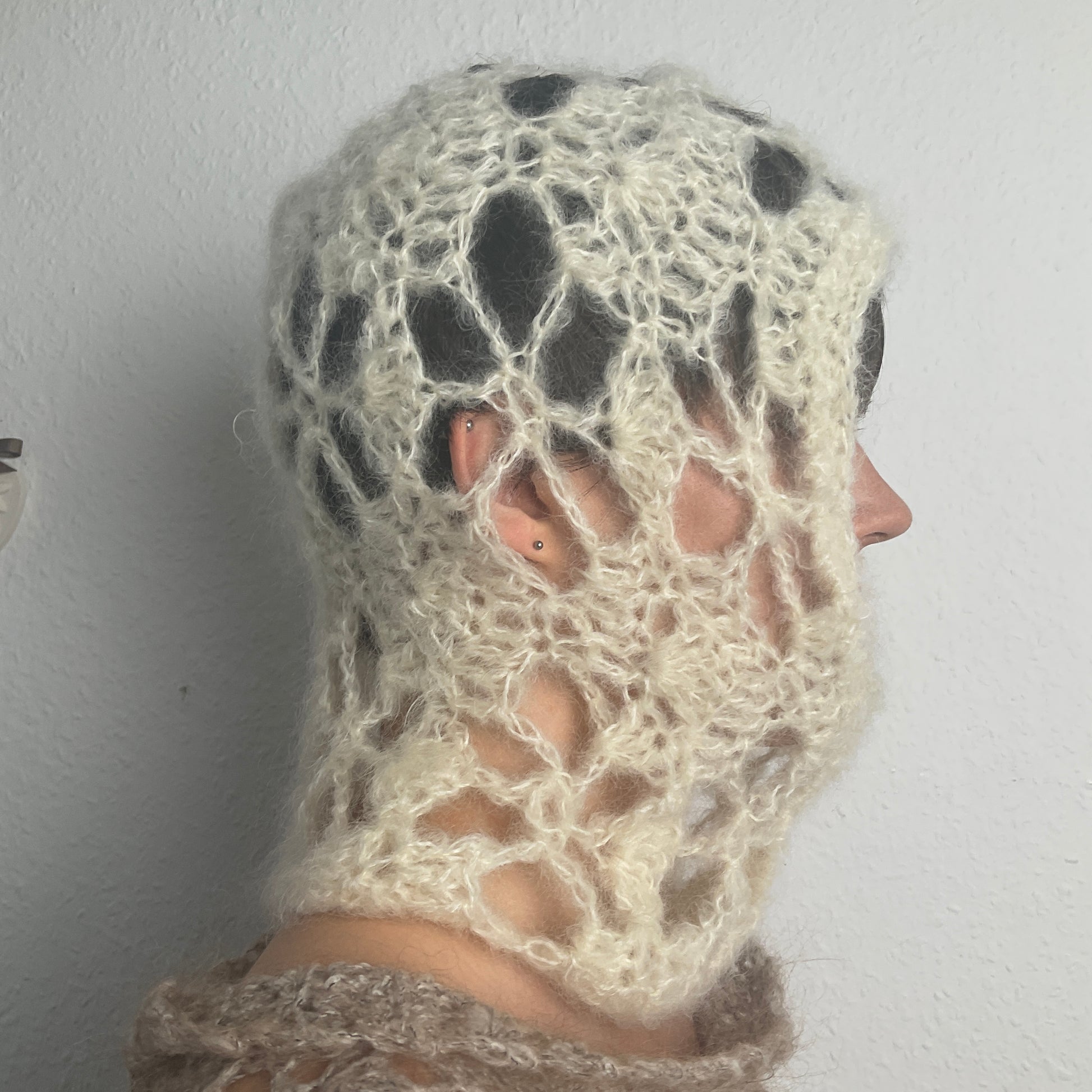White crochet balaclava prototype. Handmade in Berlin by @modde_studio.