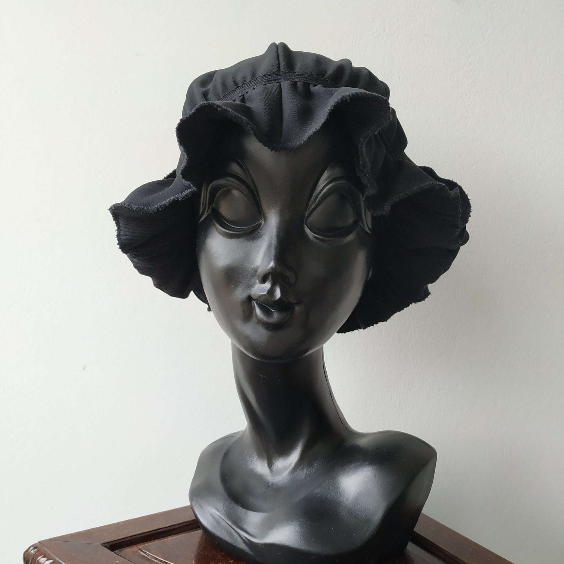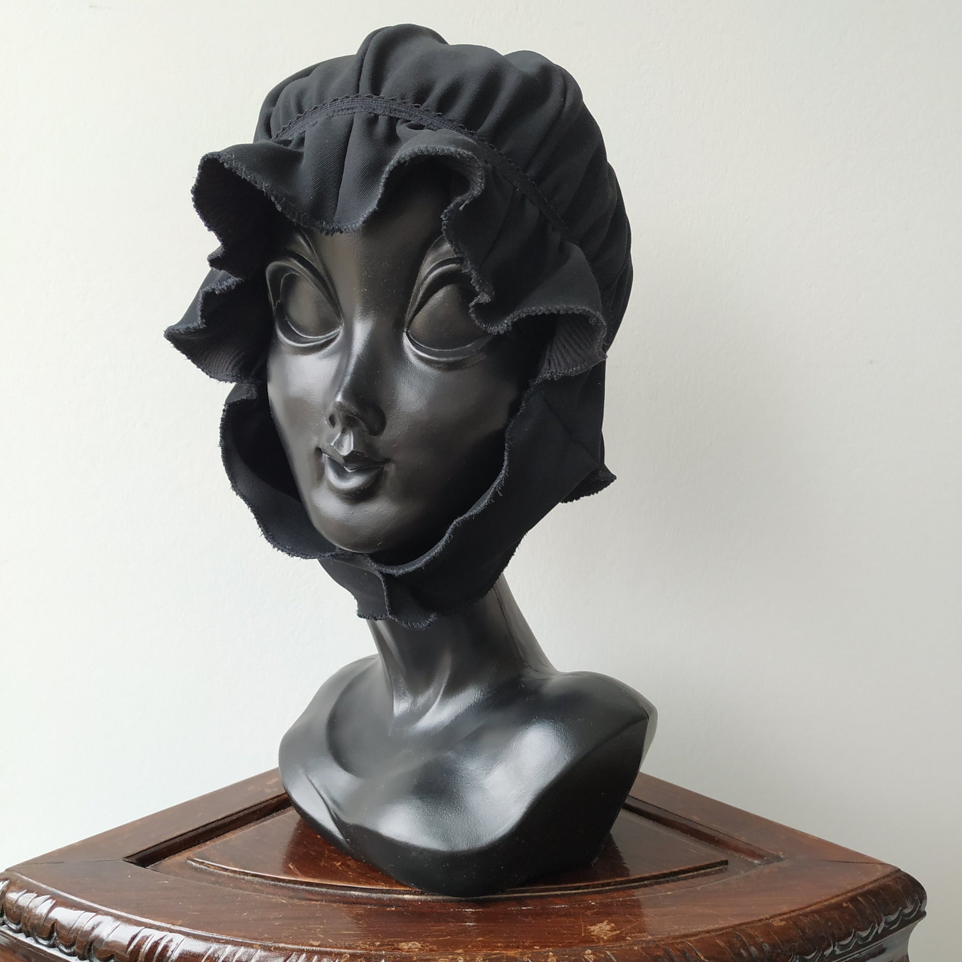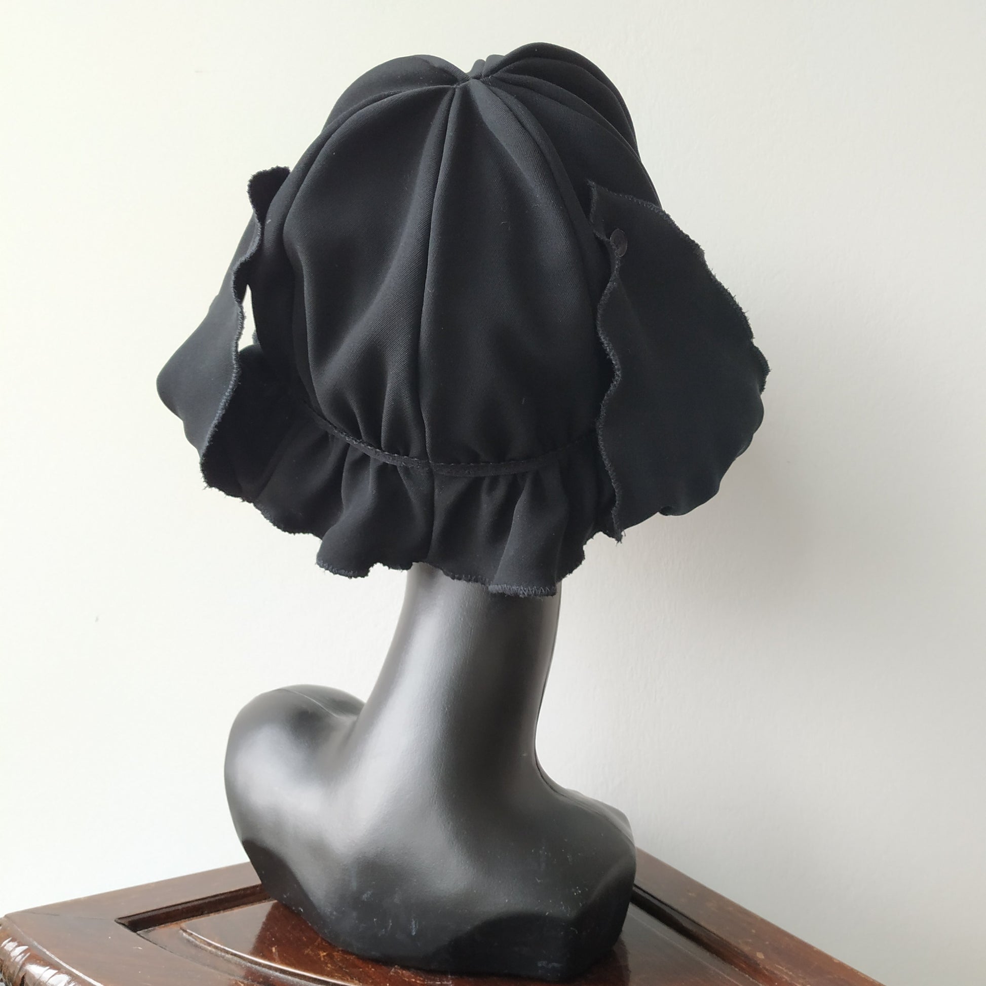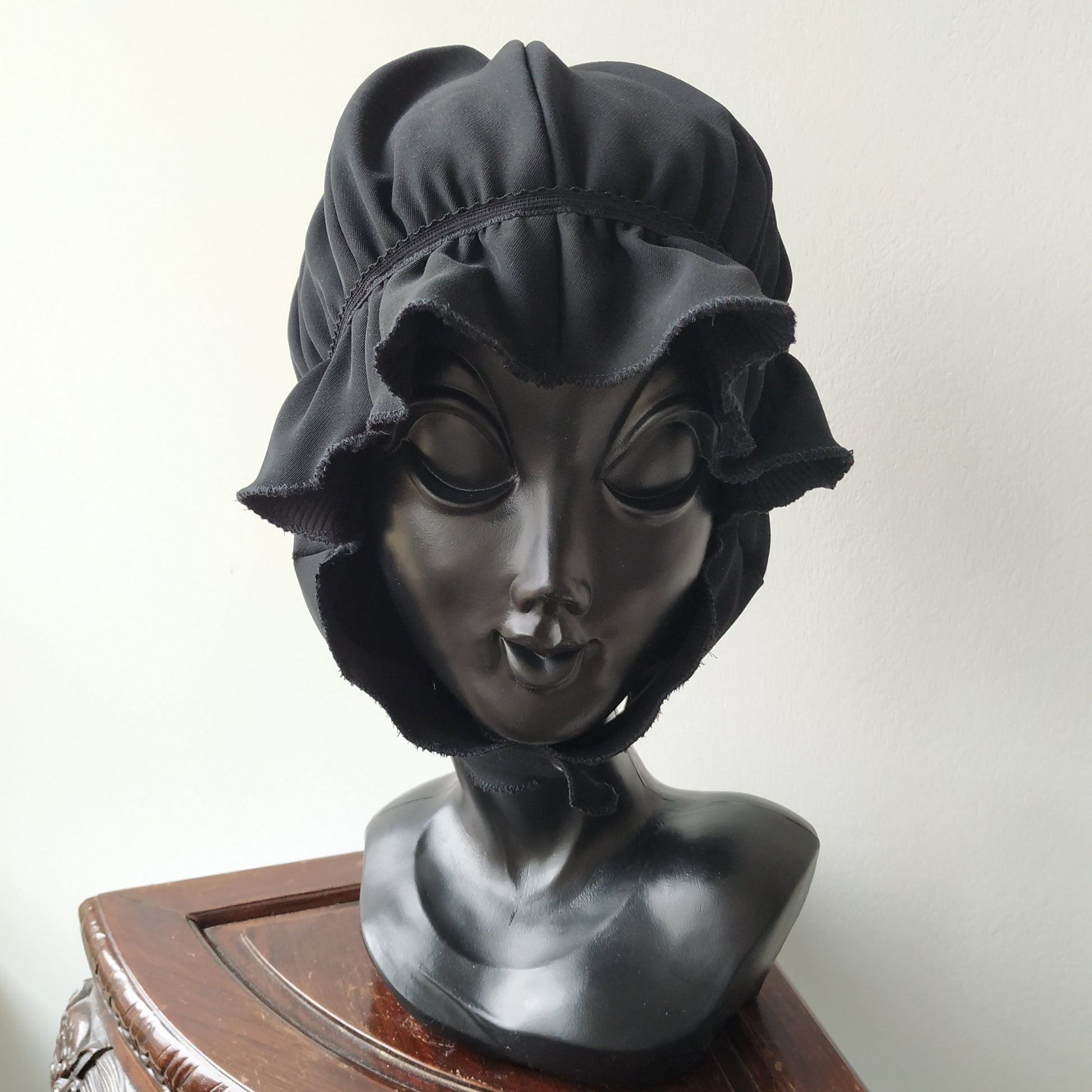 Handmade by @eithne_padraigin_ni_bhraonain from a beautiful and sporty nylon & elasthane fabric, a la Girbaud, Pr ada etc. Doubled with a ribbed cotton lining. Features ear flaps that can be buttoned together under the chin, or buttoned up on the head, or just let dangle.