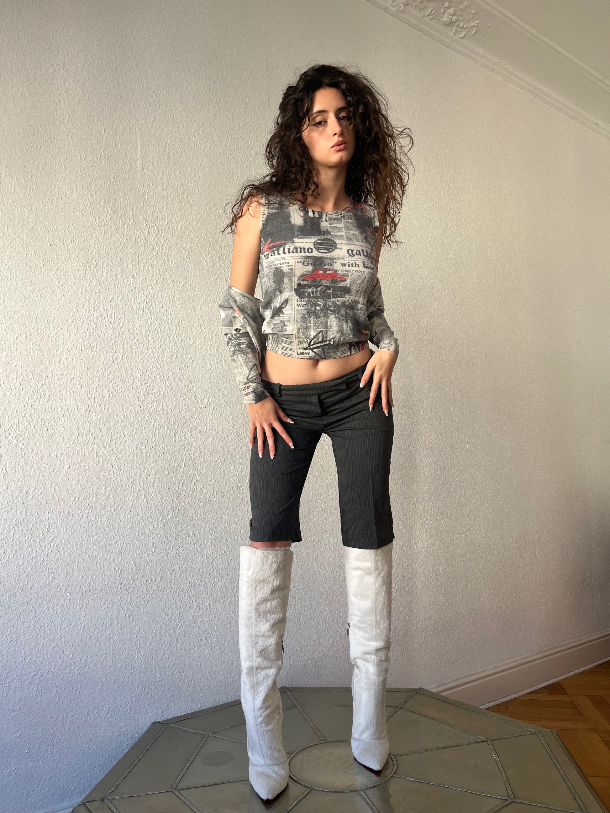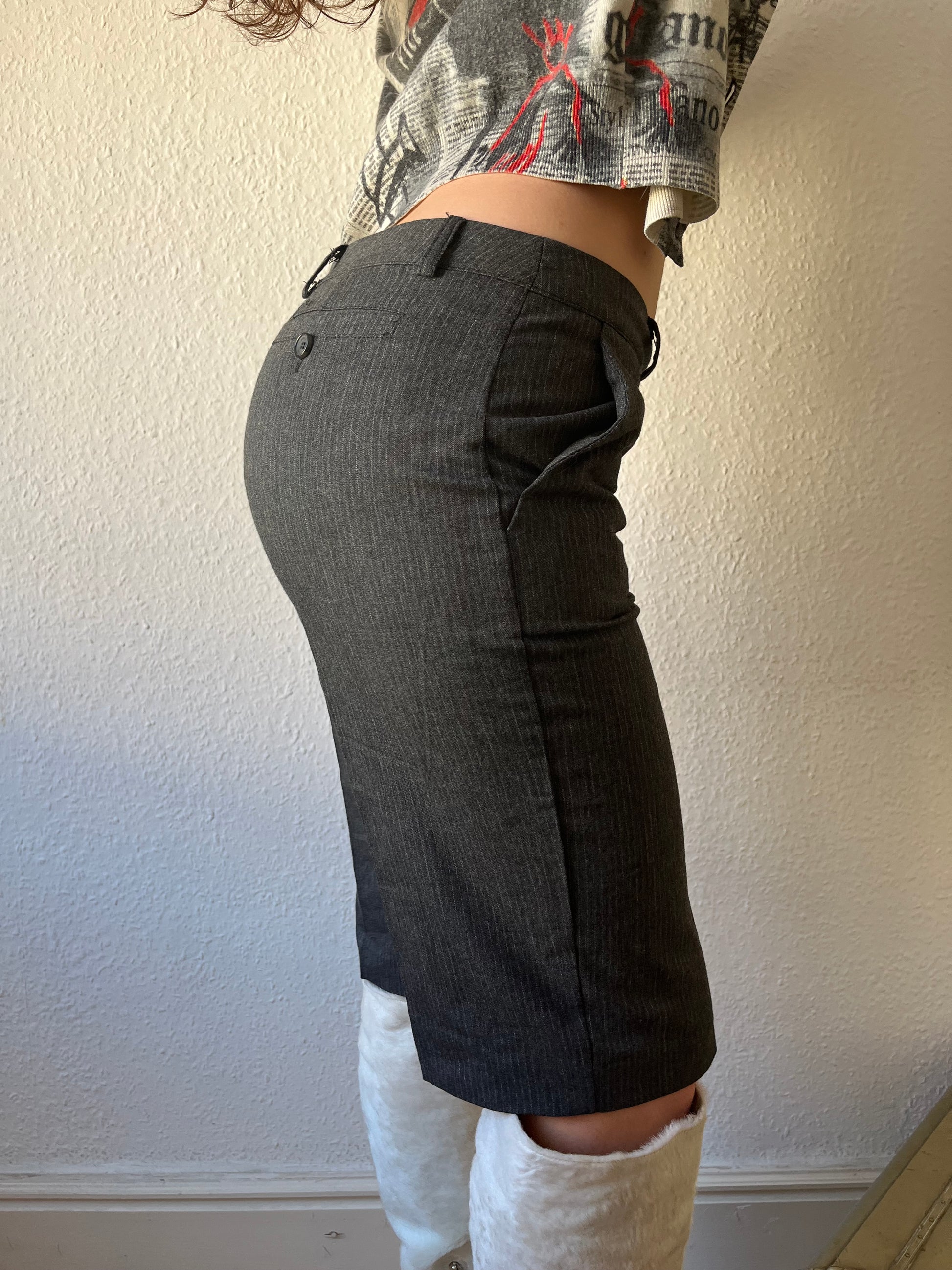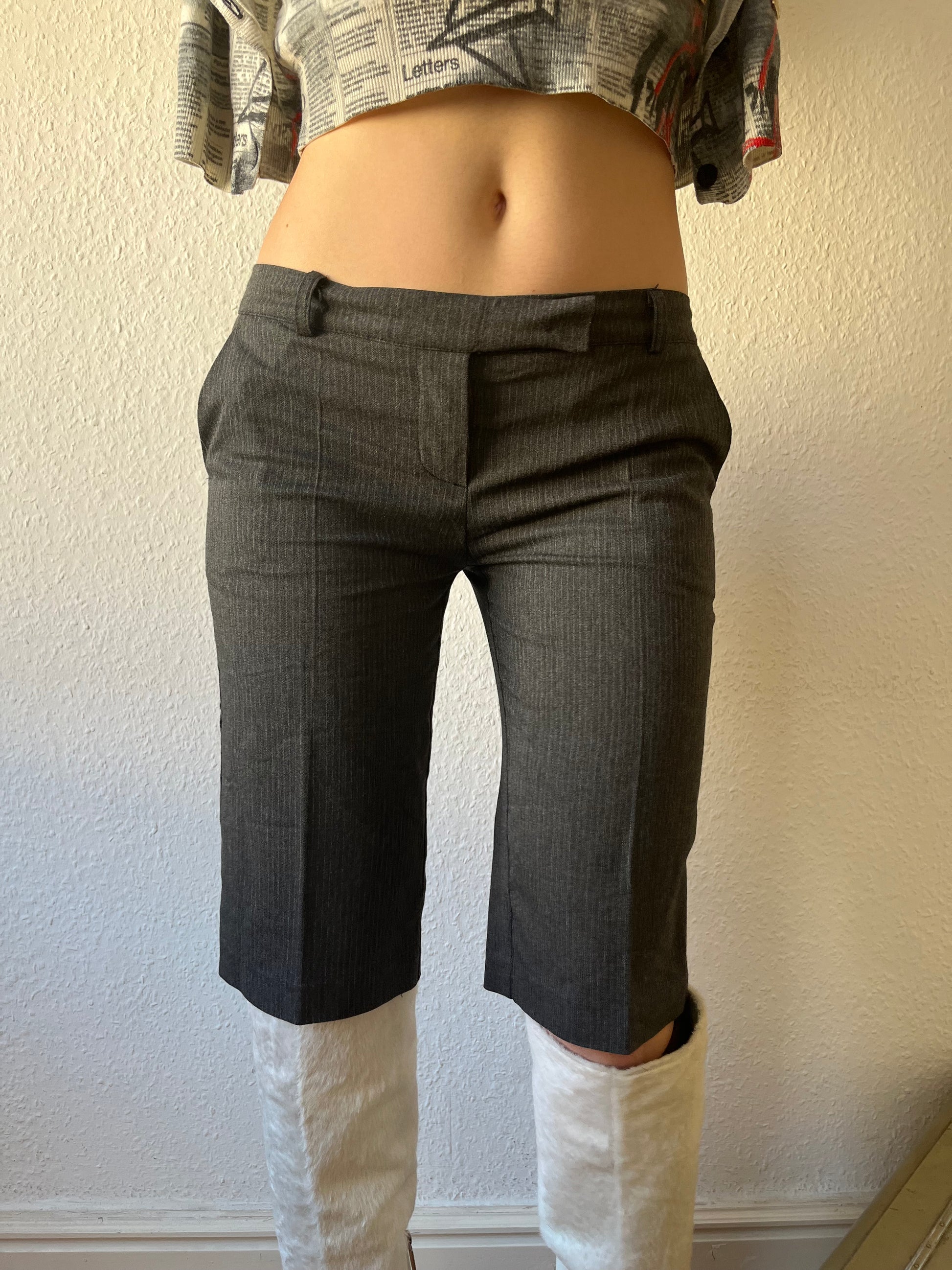 Knee length pinstripe pants