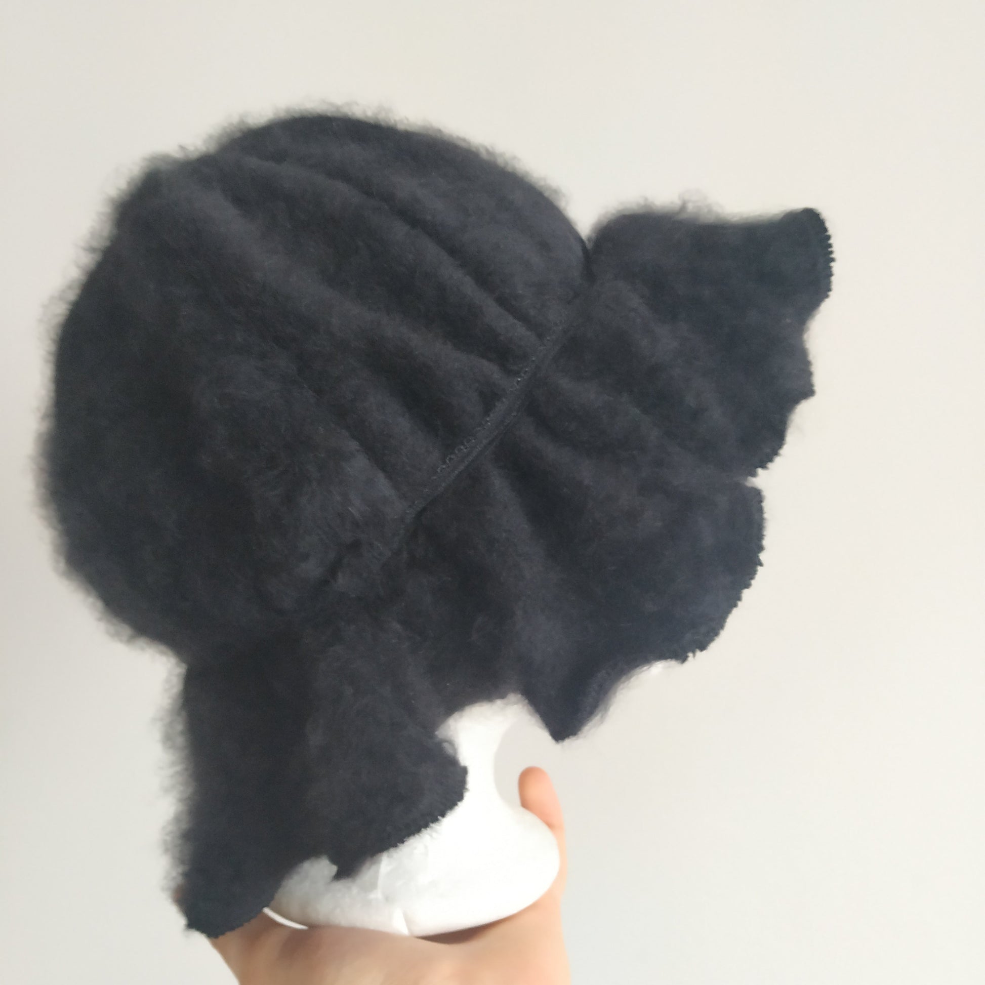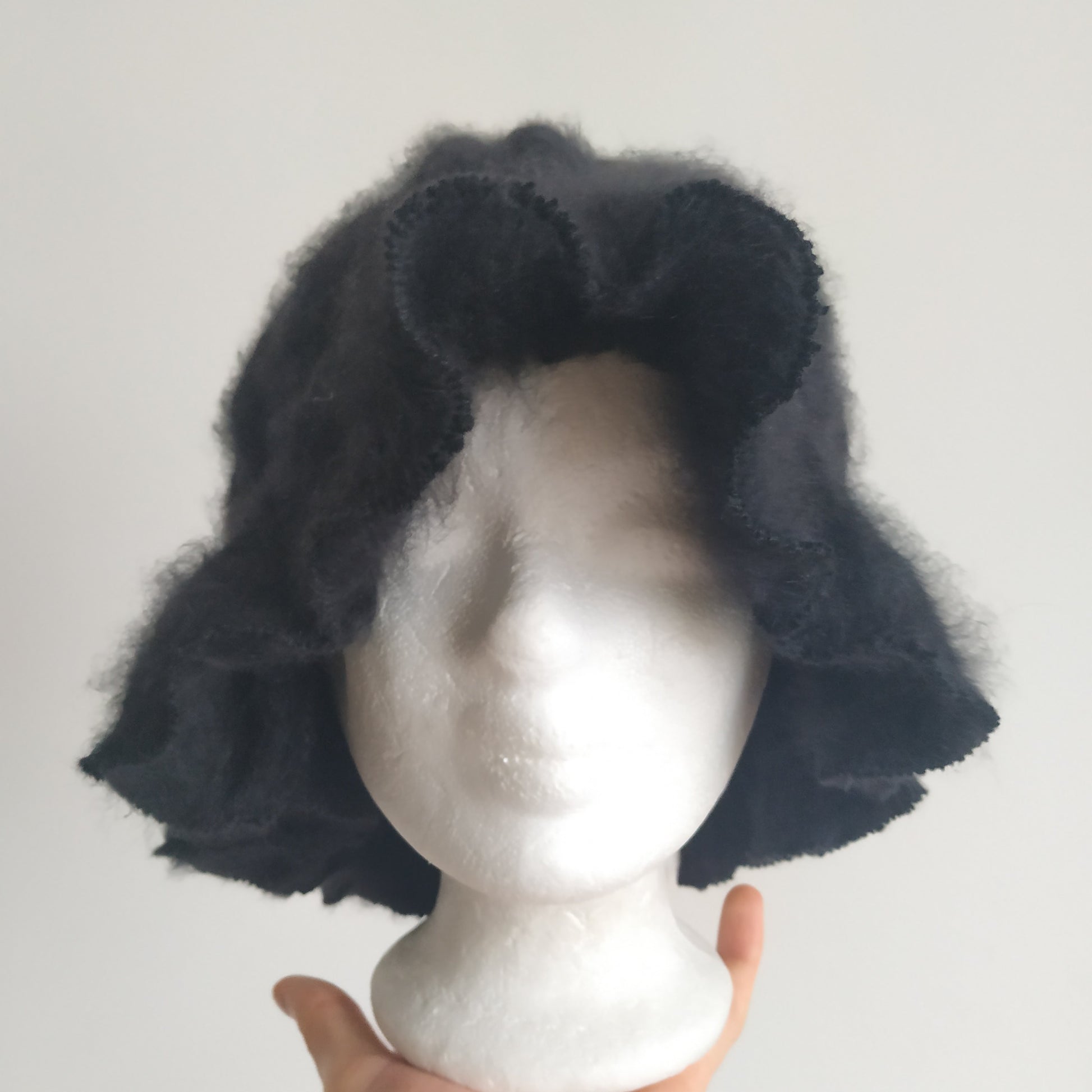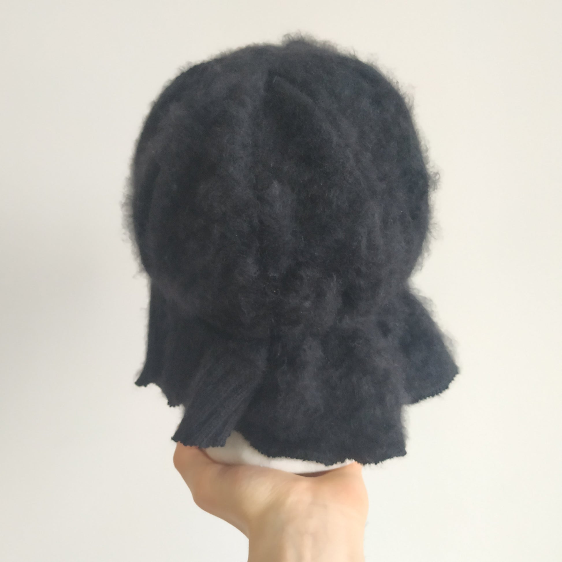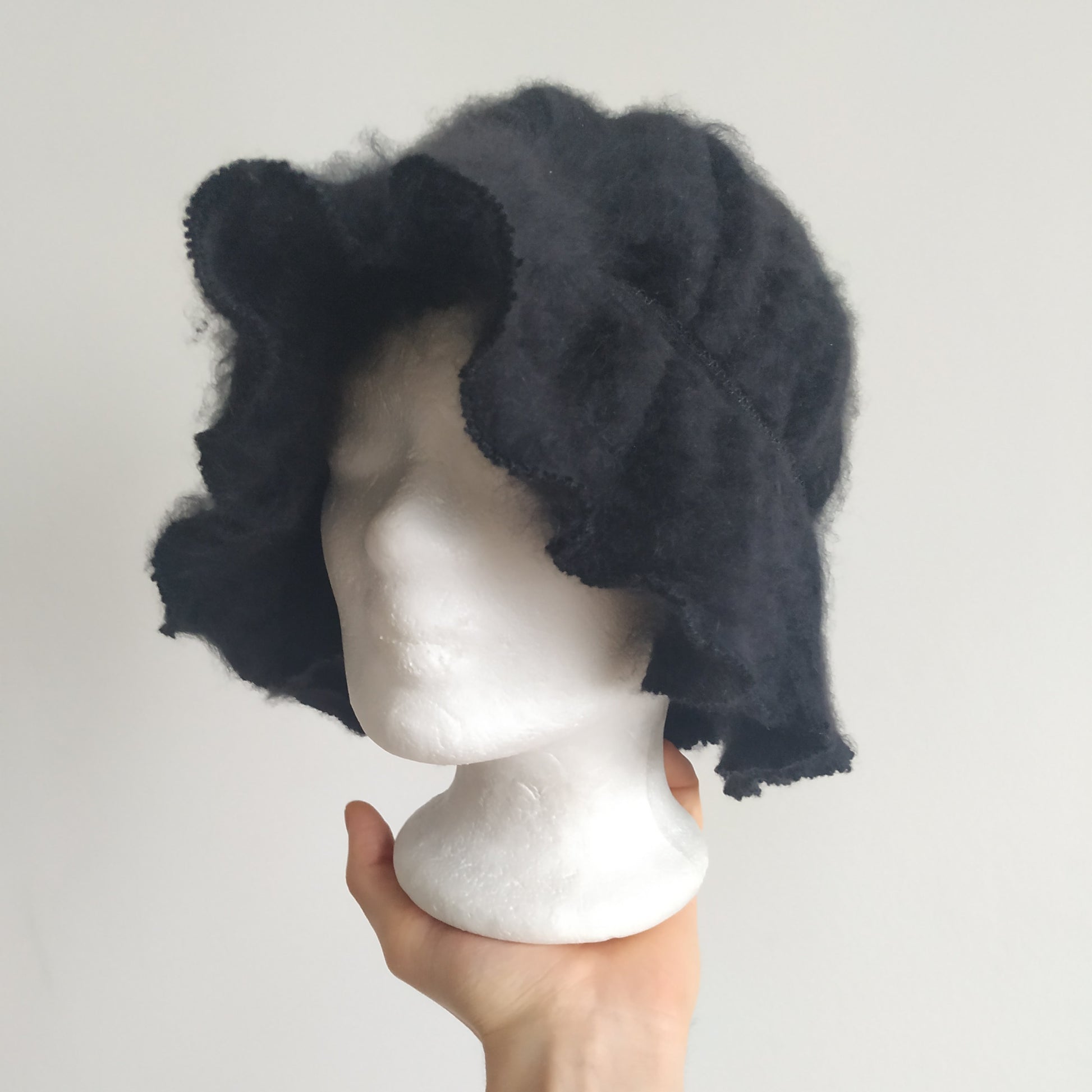 Handmade by @eithne_padraigin_ni_bhraonain from a pure angora t-shirt. Supremely soft, thick and luxurious fabric. Can also be worn reversed for a more crown-like look.