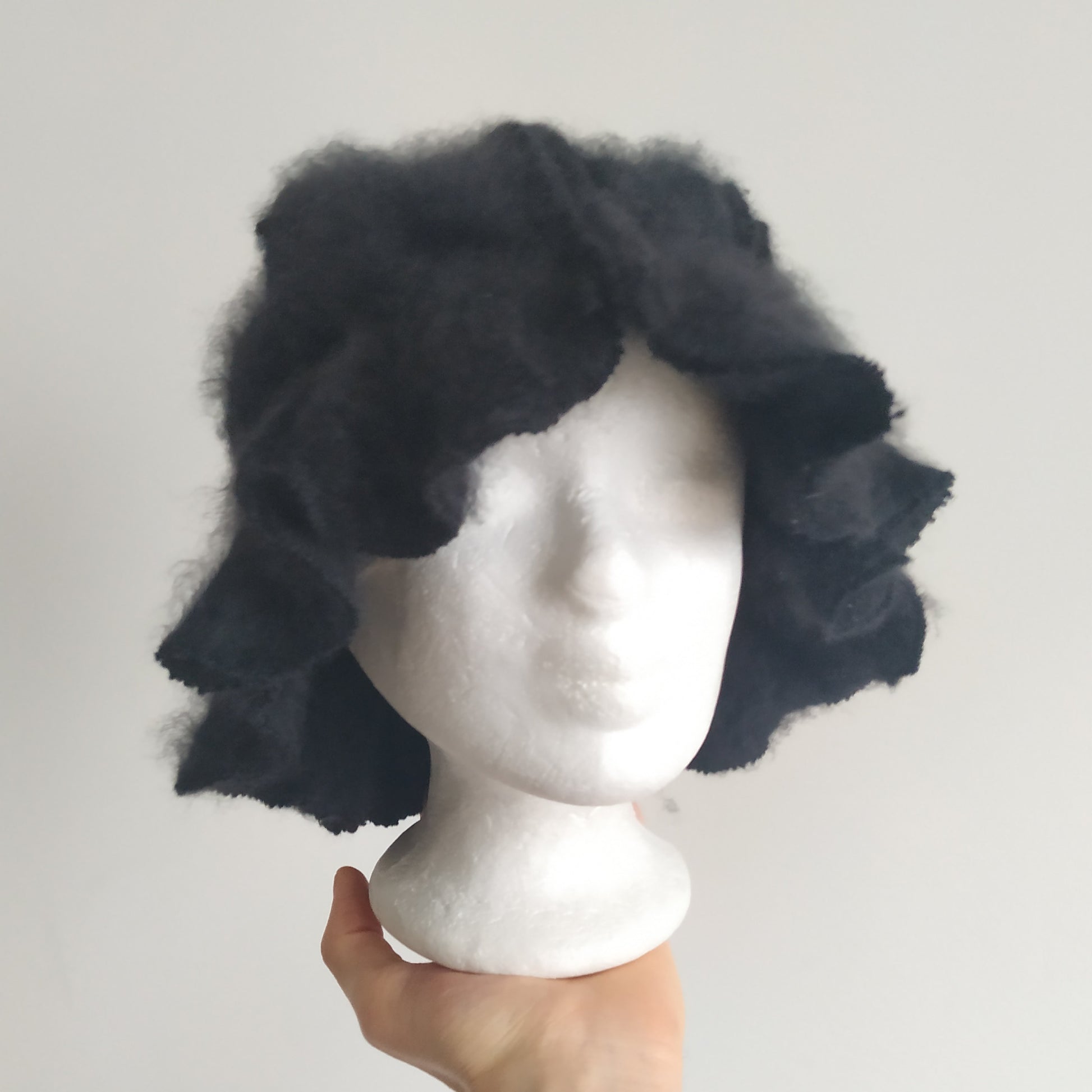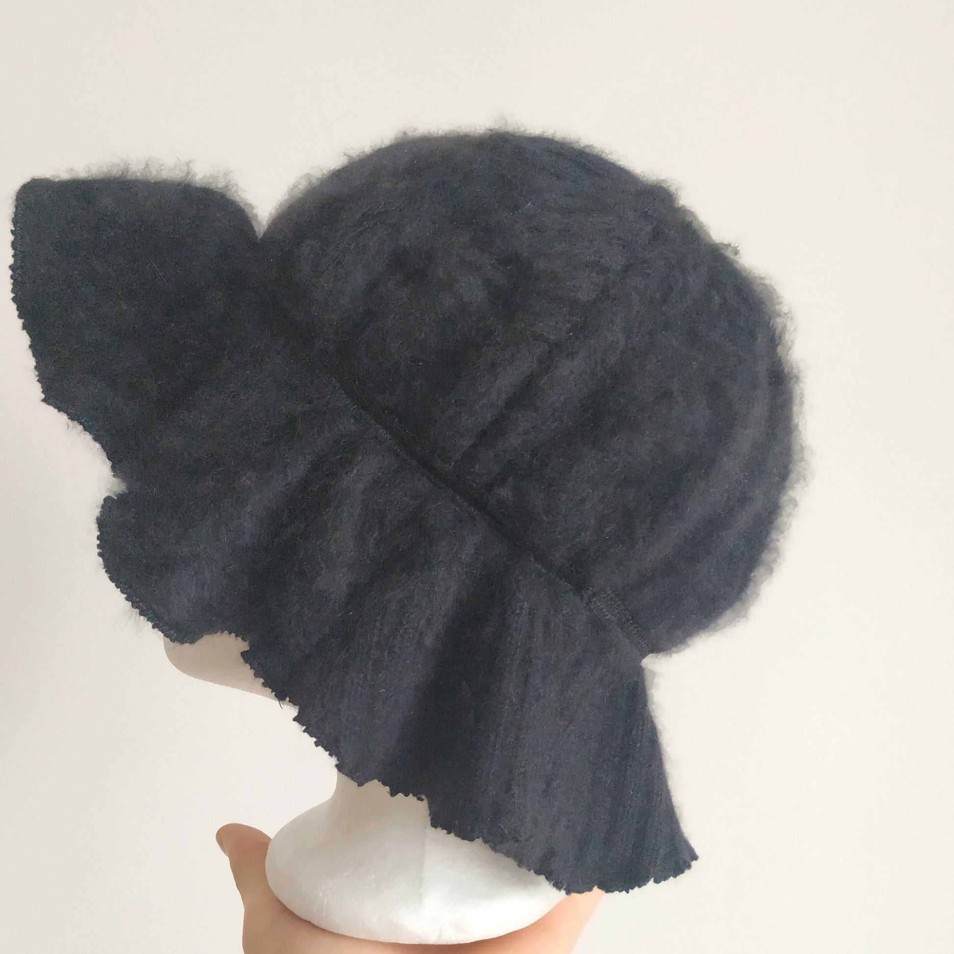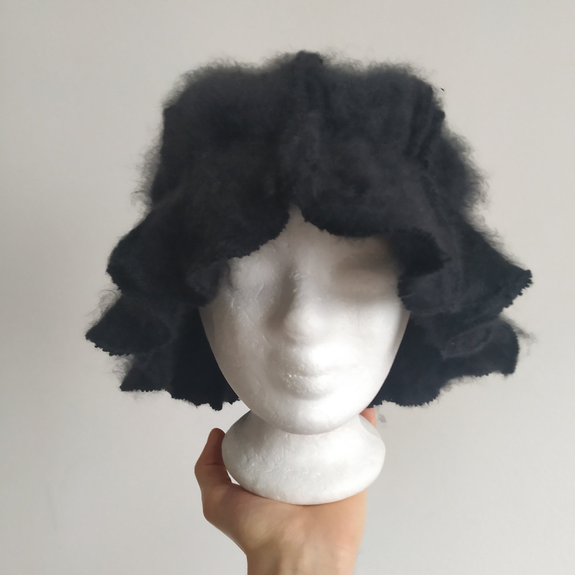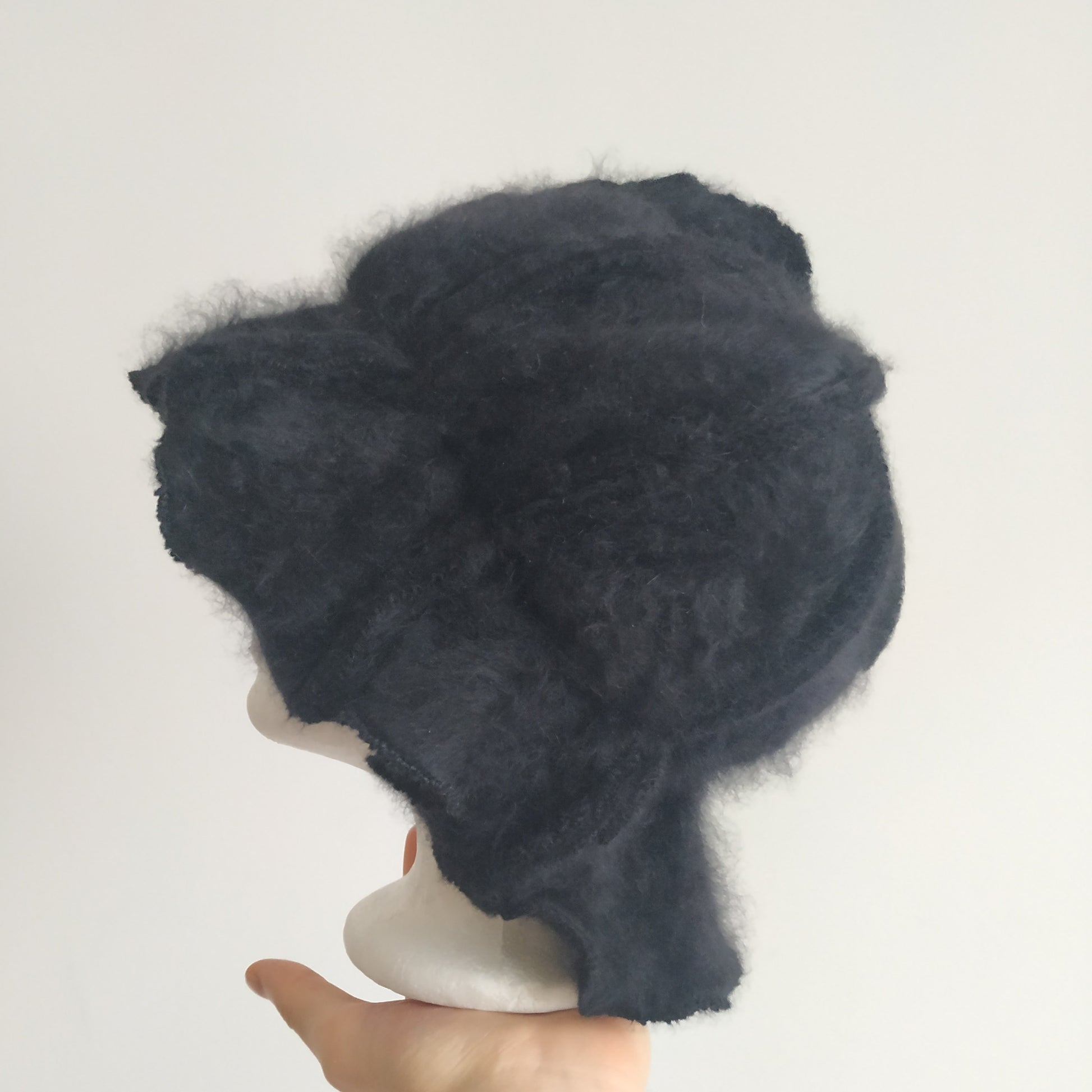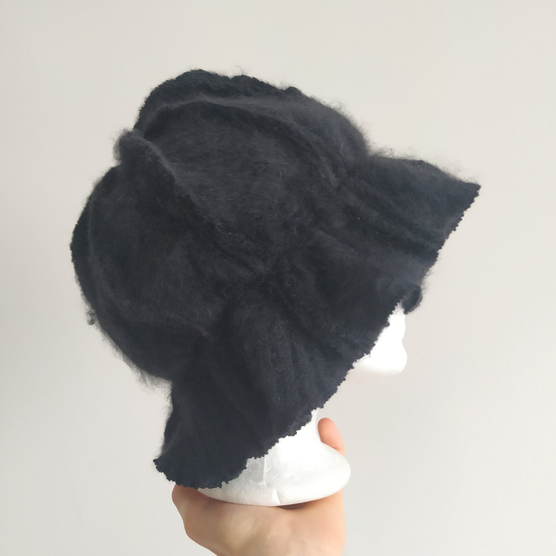 Handmade by @eithne_padraigin_ni_bhraonain from a pure angora t-shirt. Supremely soft, thick and luxurious fabric. Can also be worn reversed for a more crown-like look.