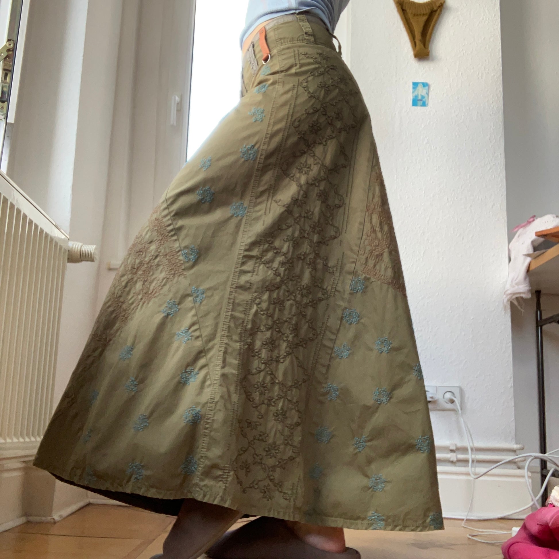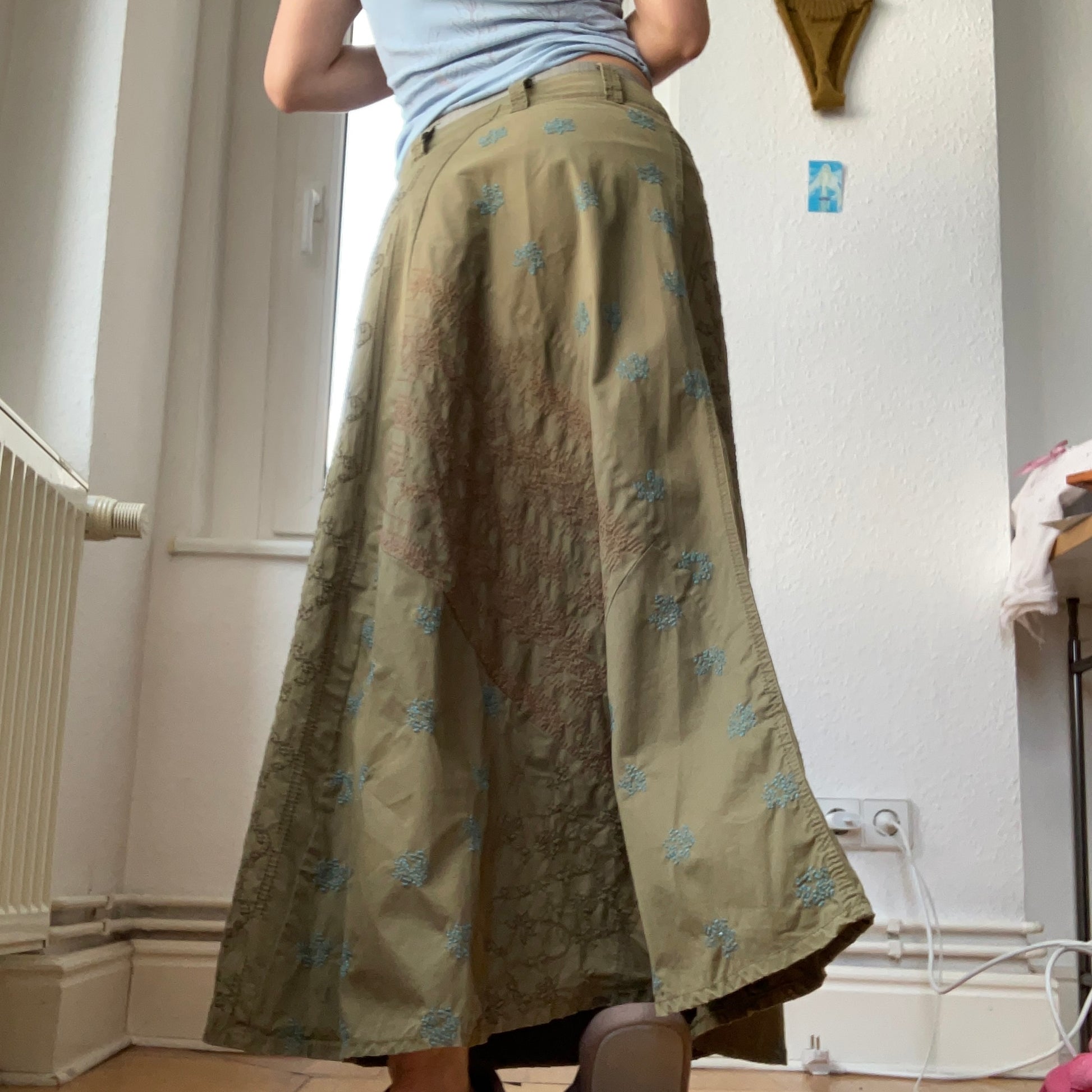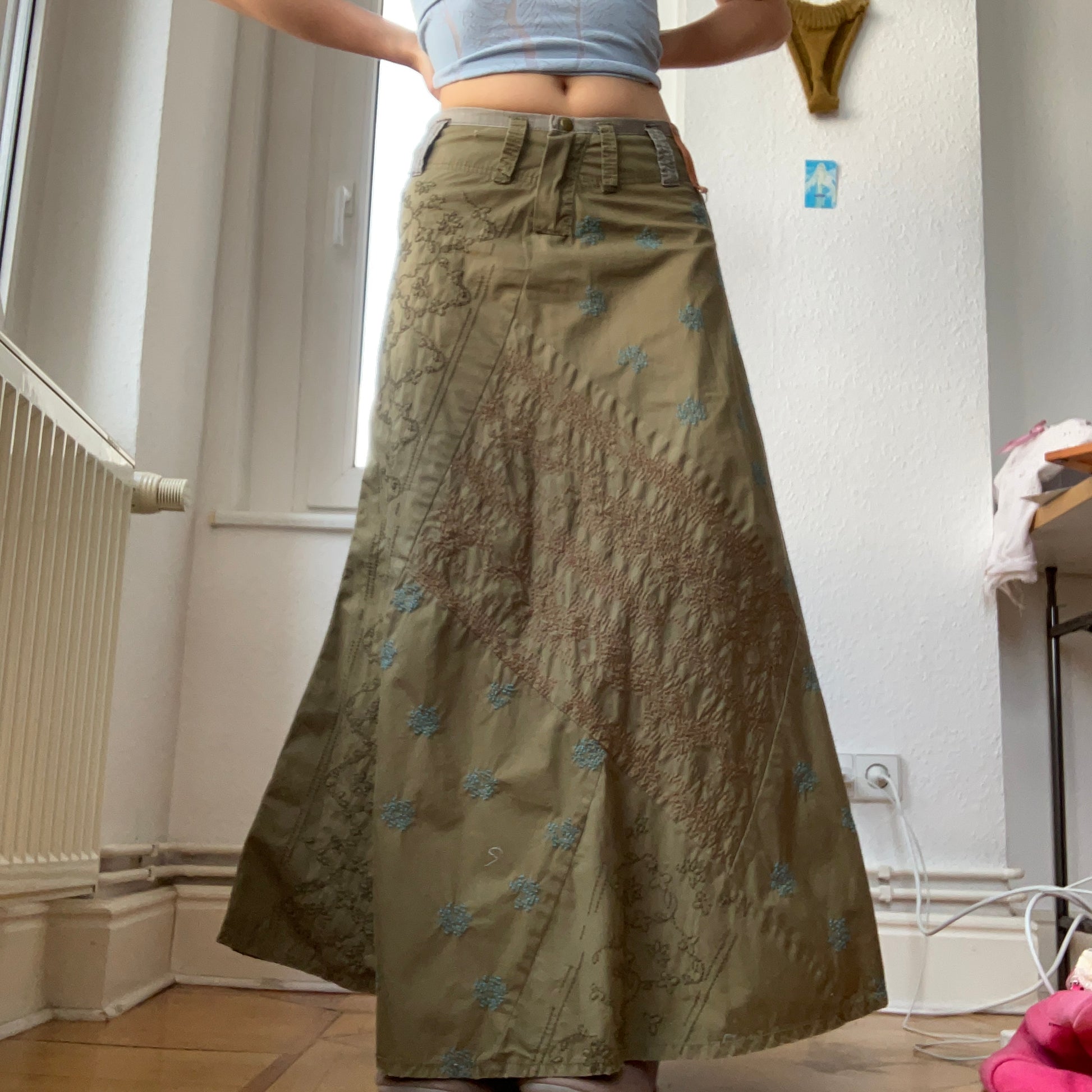 90s long cargo skirt with embroidery