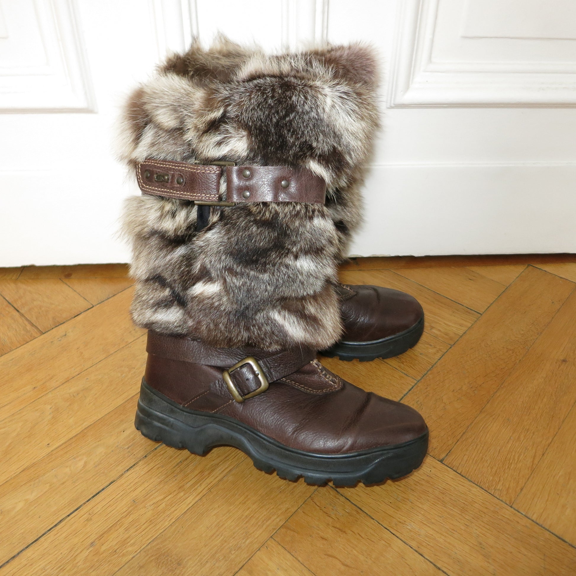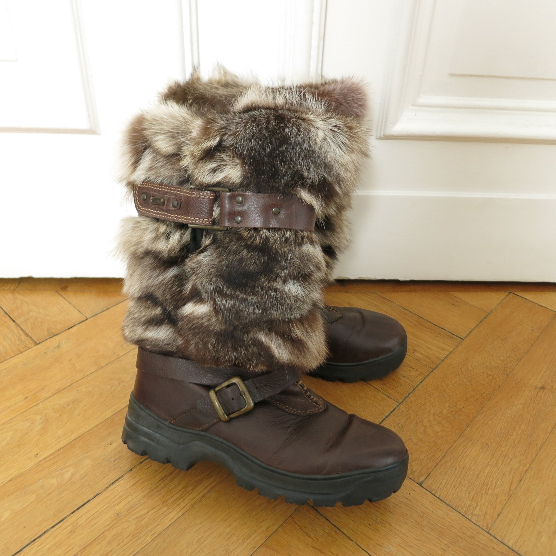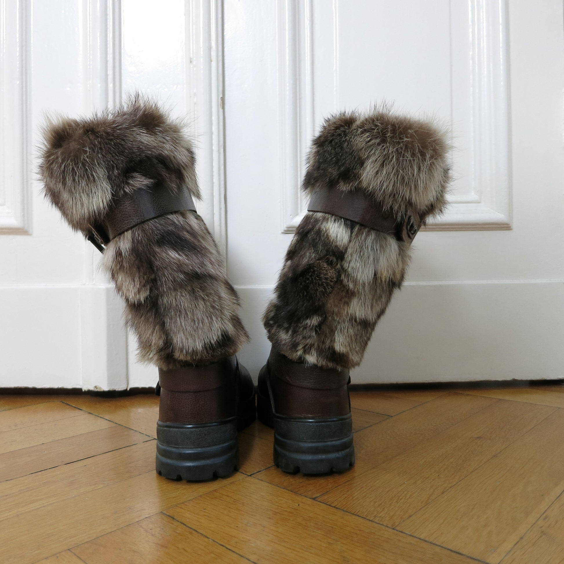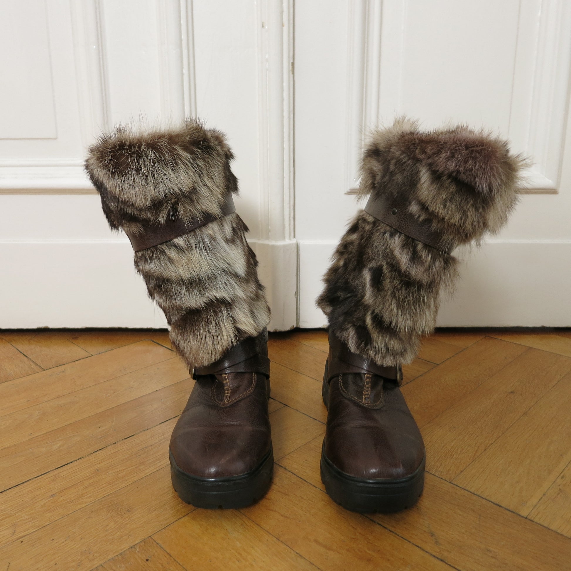 Furry snow boots. Can be worn with or without spikes by flipping a part of the sole.