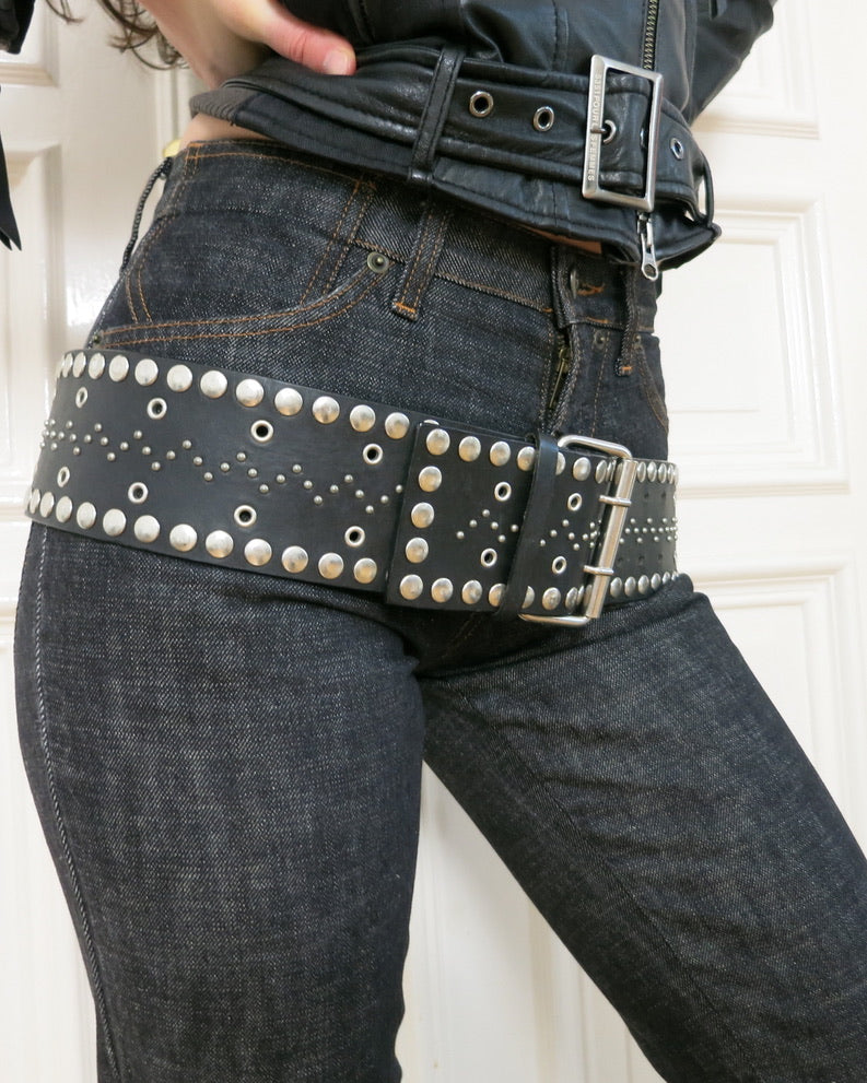 Thick studded leather belt from Sportmax.