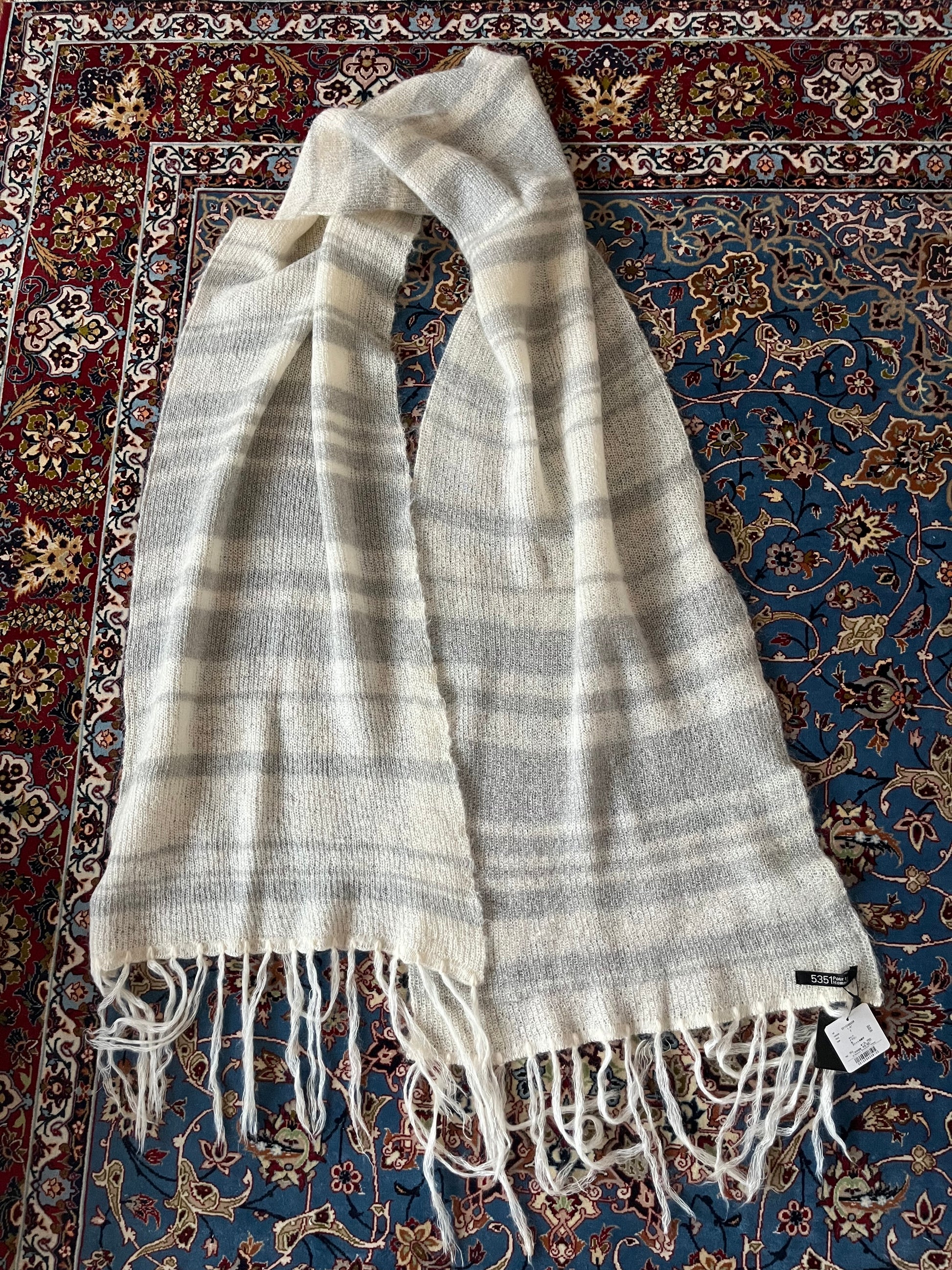 Extra long mohair blend striped scarf from 5351 Pour Les Hommes.
