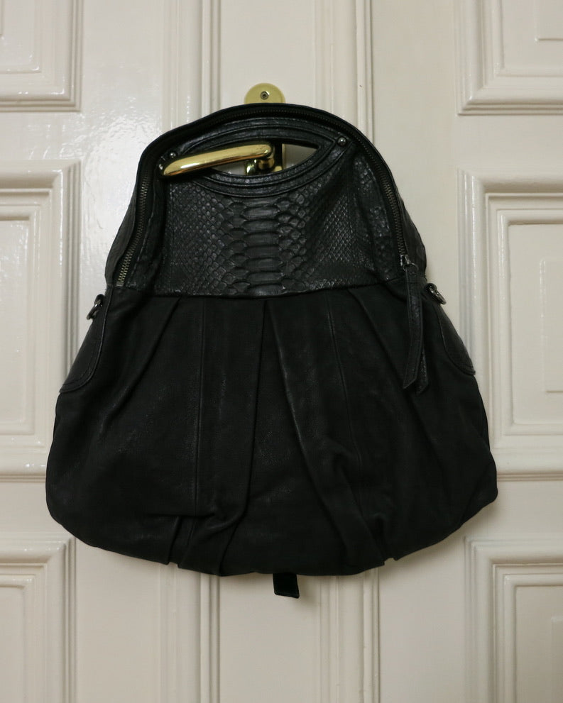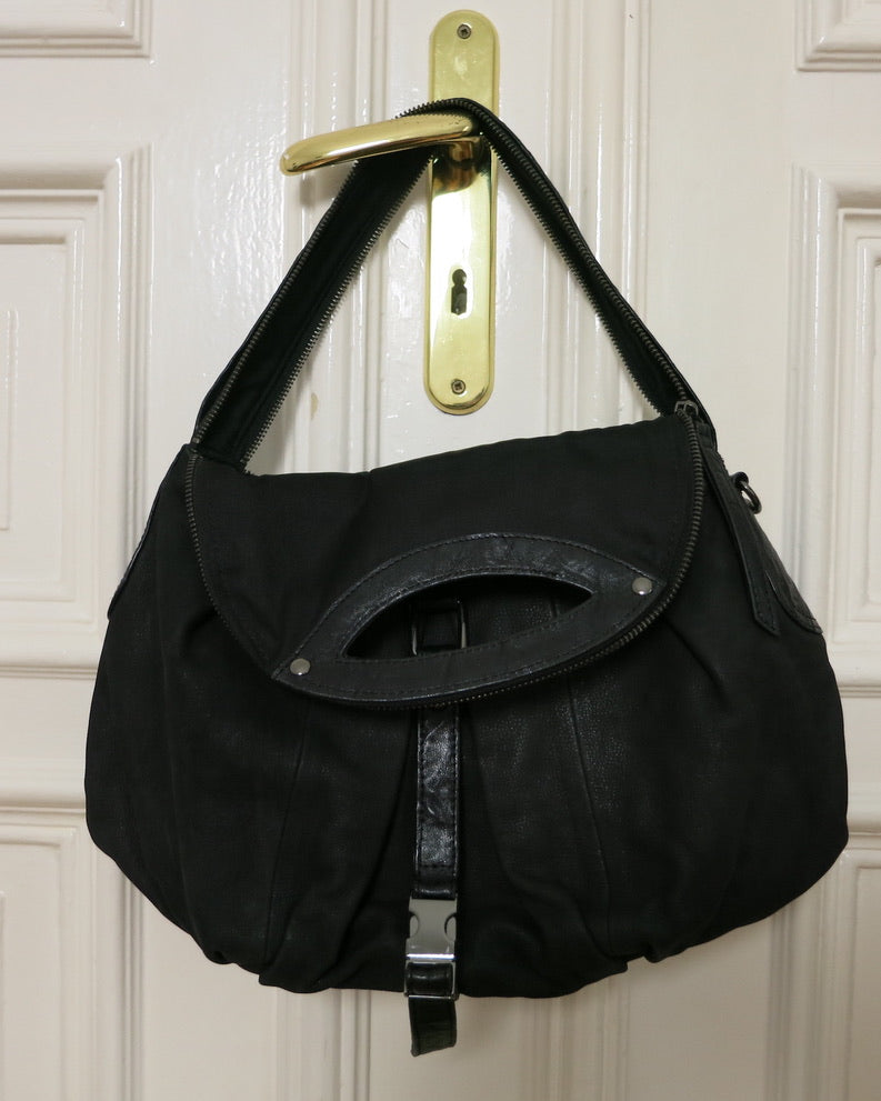 Carried in the hand, or if unzipped, the bag can also be worn on the shoulder.