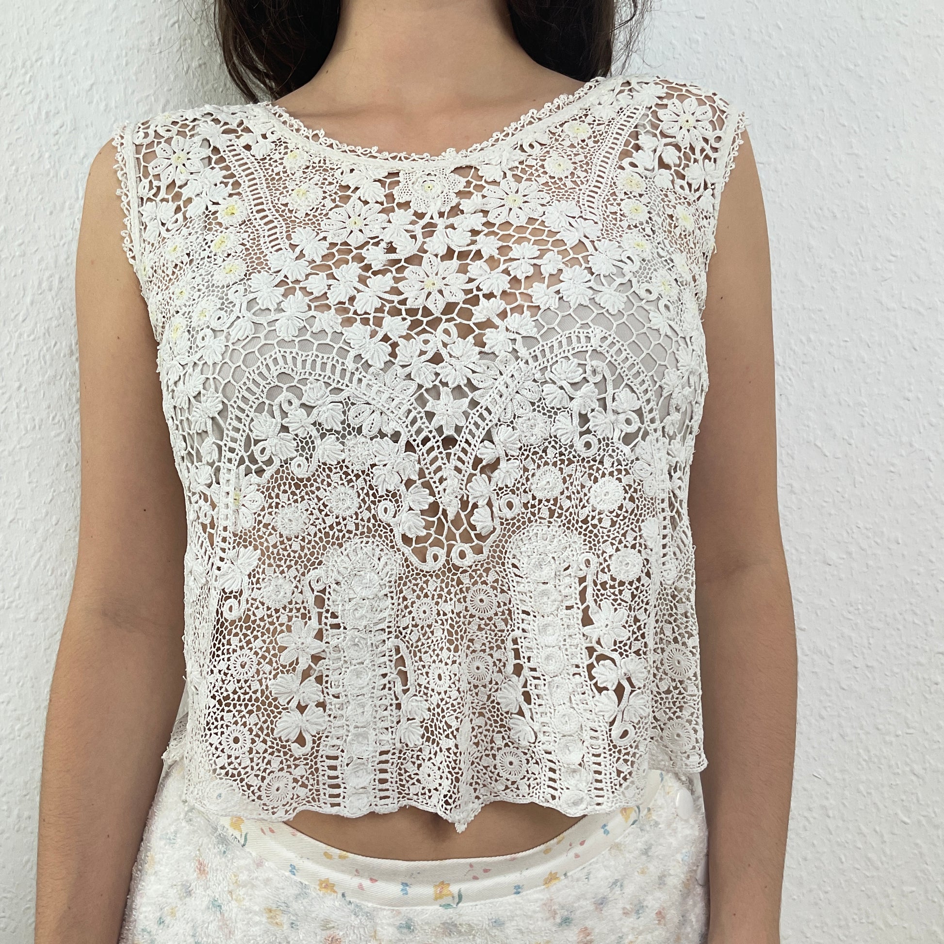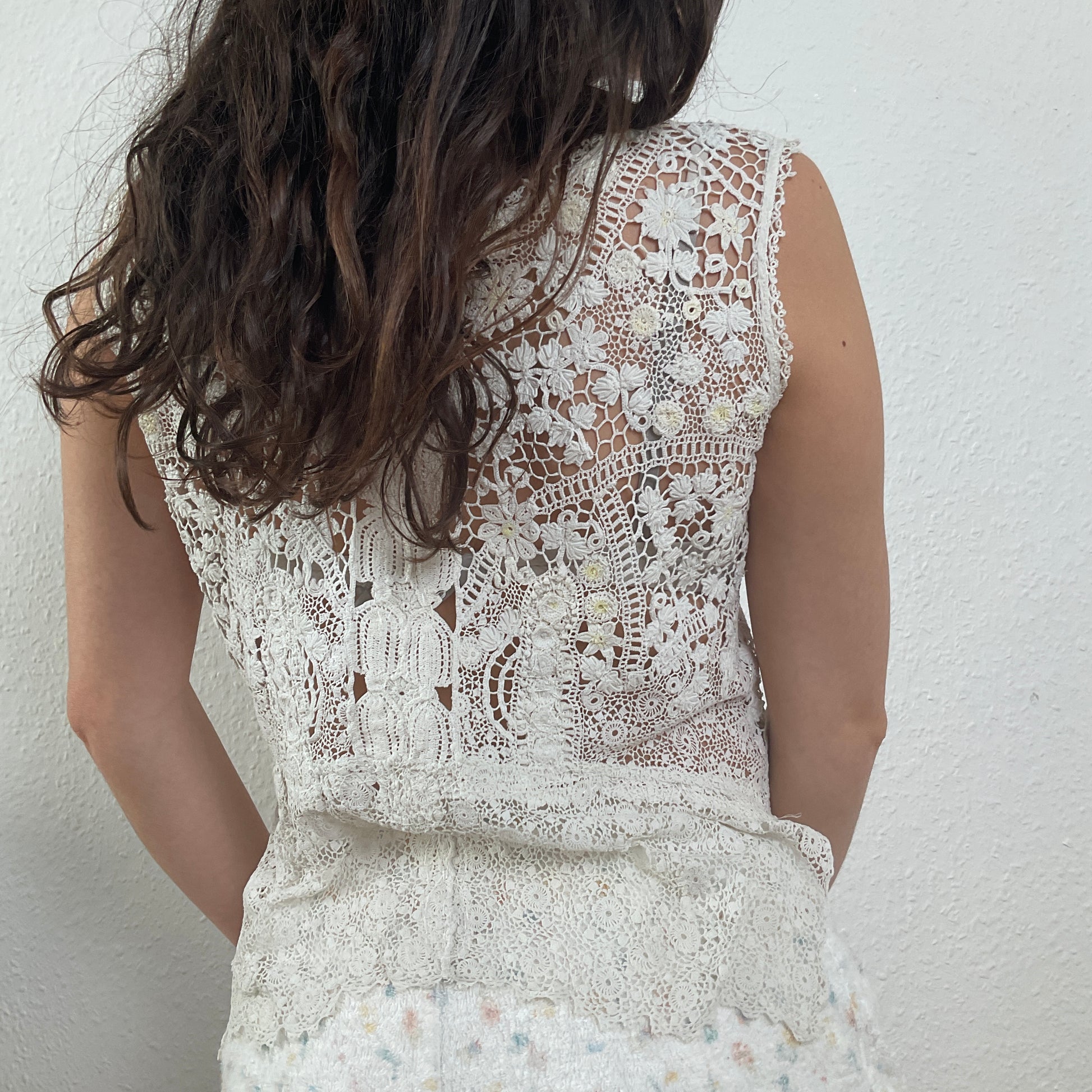 Romantic handmade 60s Italian top with three dimensional appliqué.