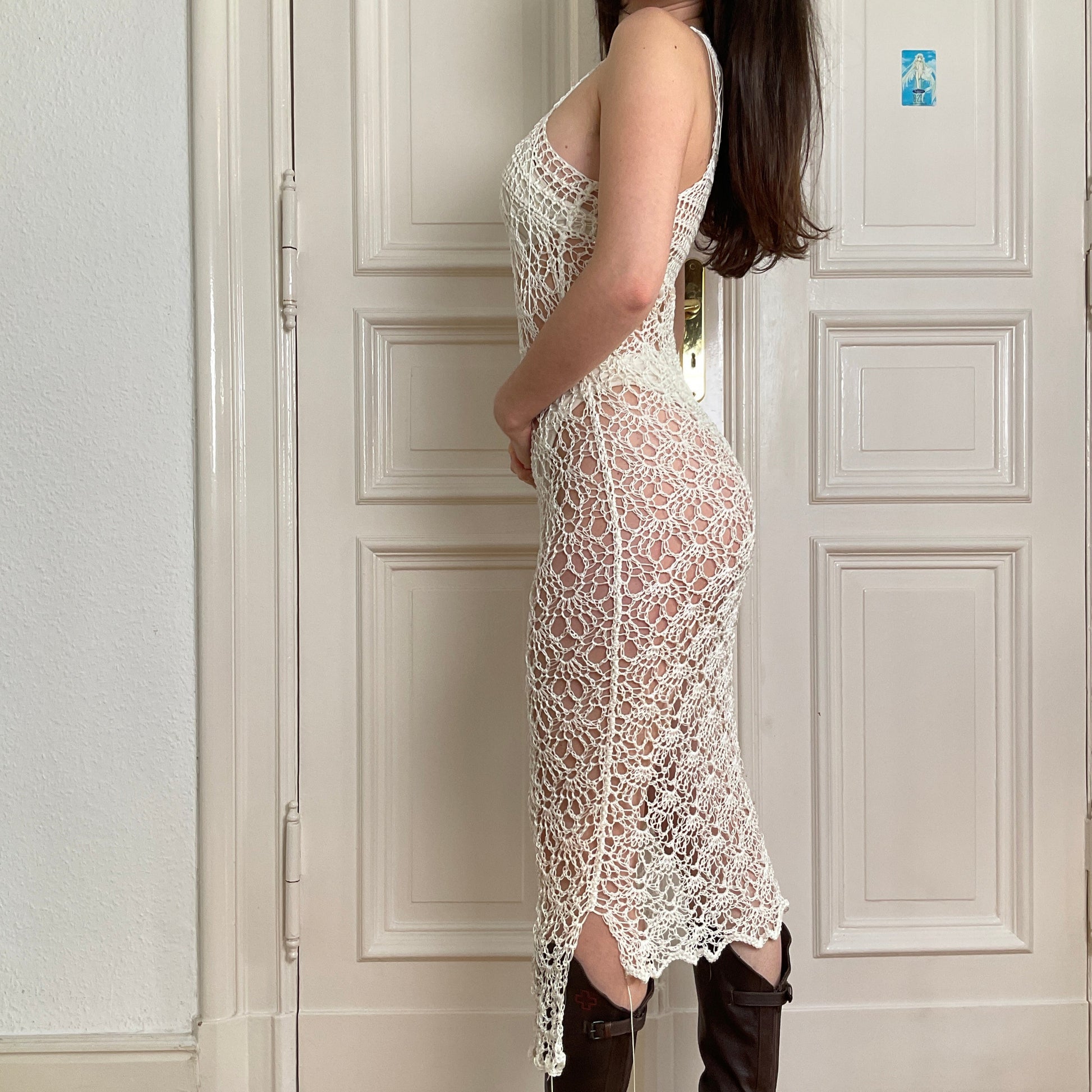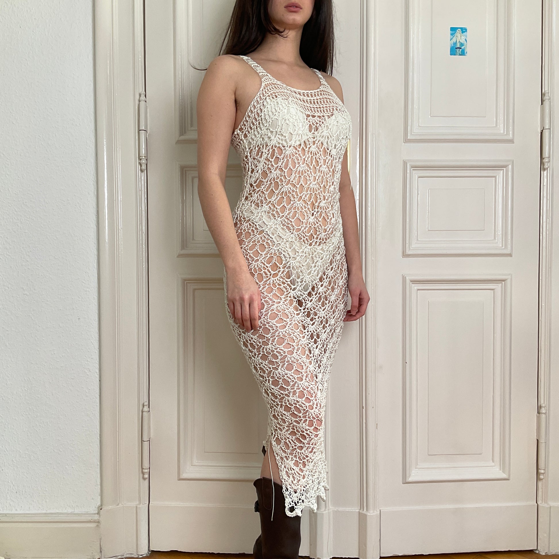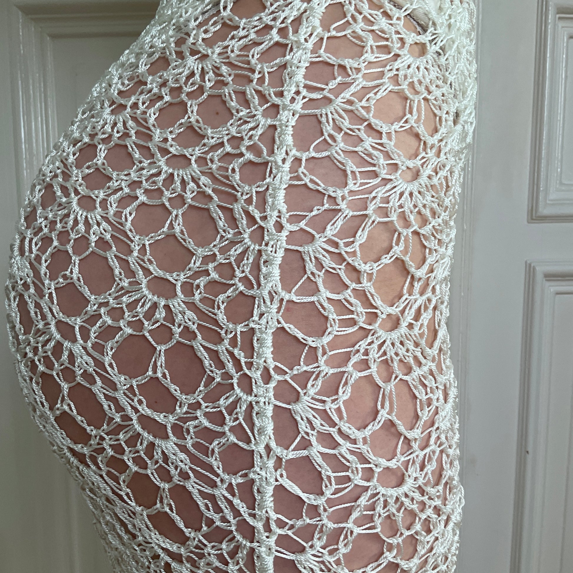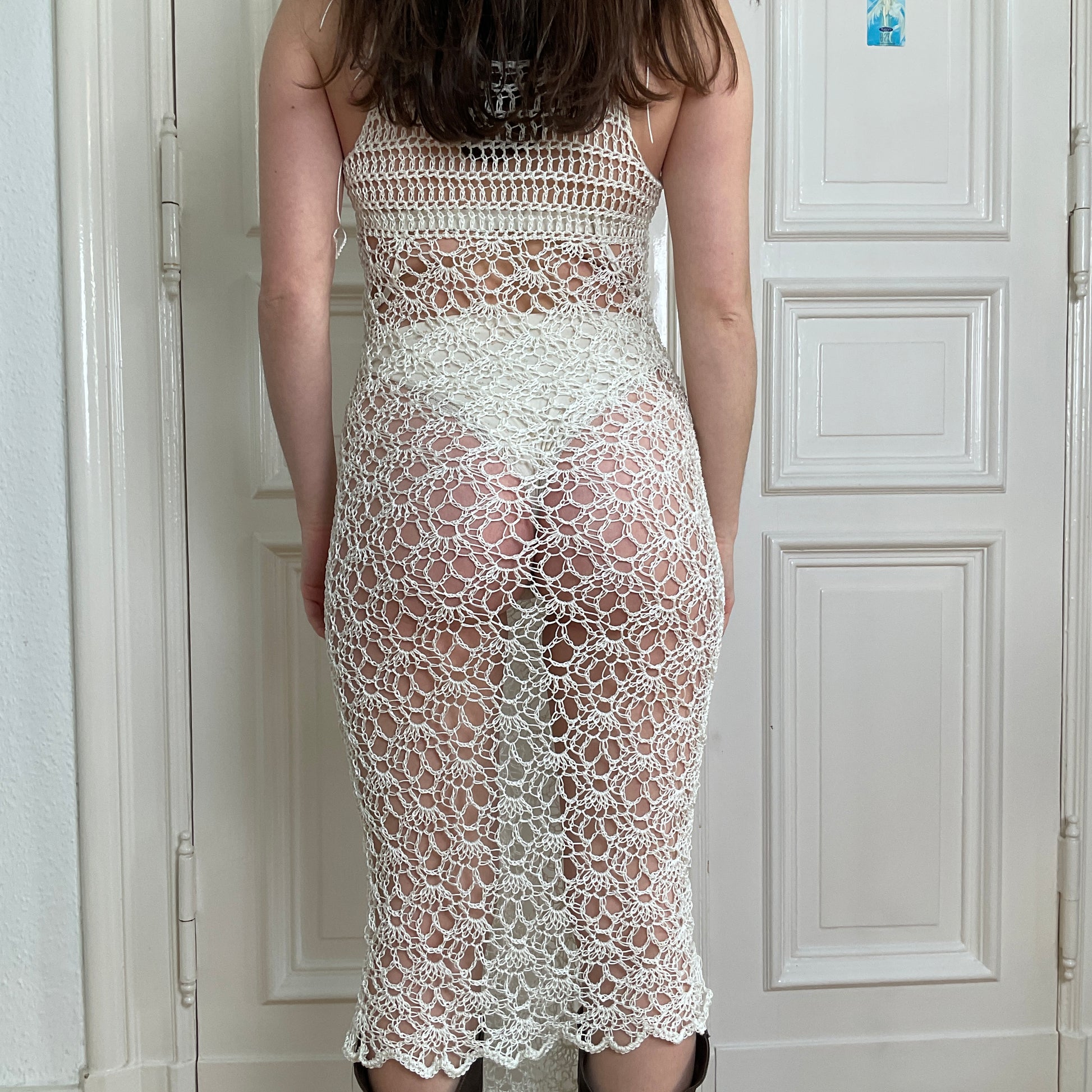 White crochet dress in nylon.