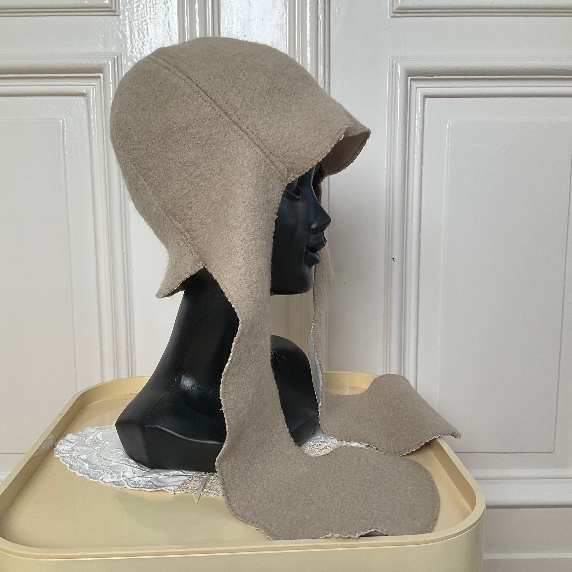 ꒰⑅ᵕ༚ᵕ꒱˖♡ beige virgin wool orchid bonnet ♡˖꒰ᵕ༚ᵕ⑅꒱