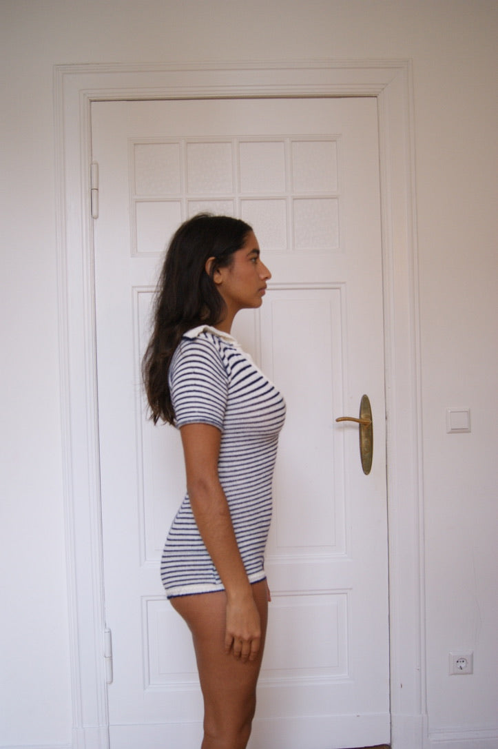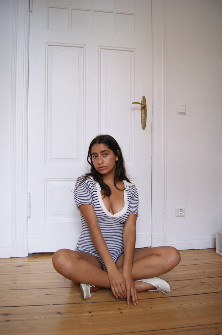 Navy inspired knit bodysuit.