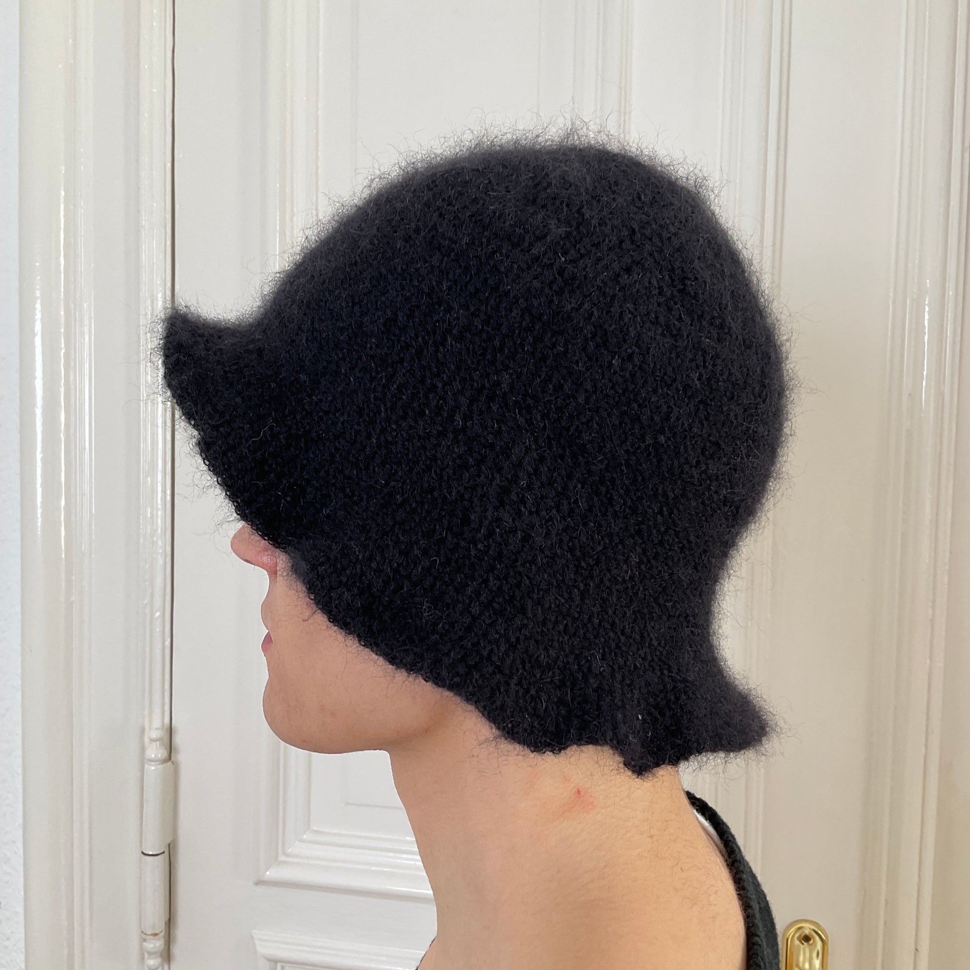 Natascha Domino ~ mohair blend crochet bucket hat in black