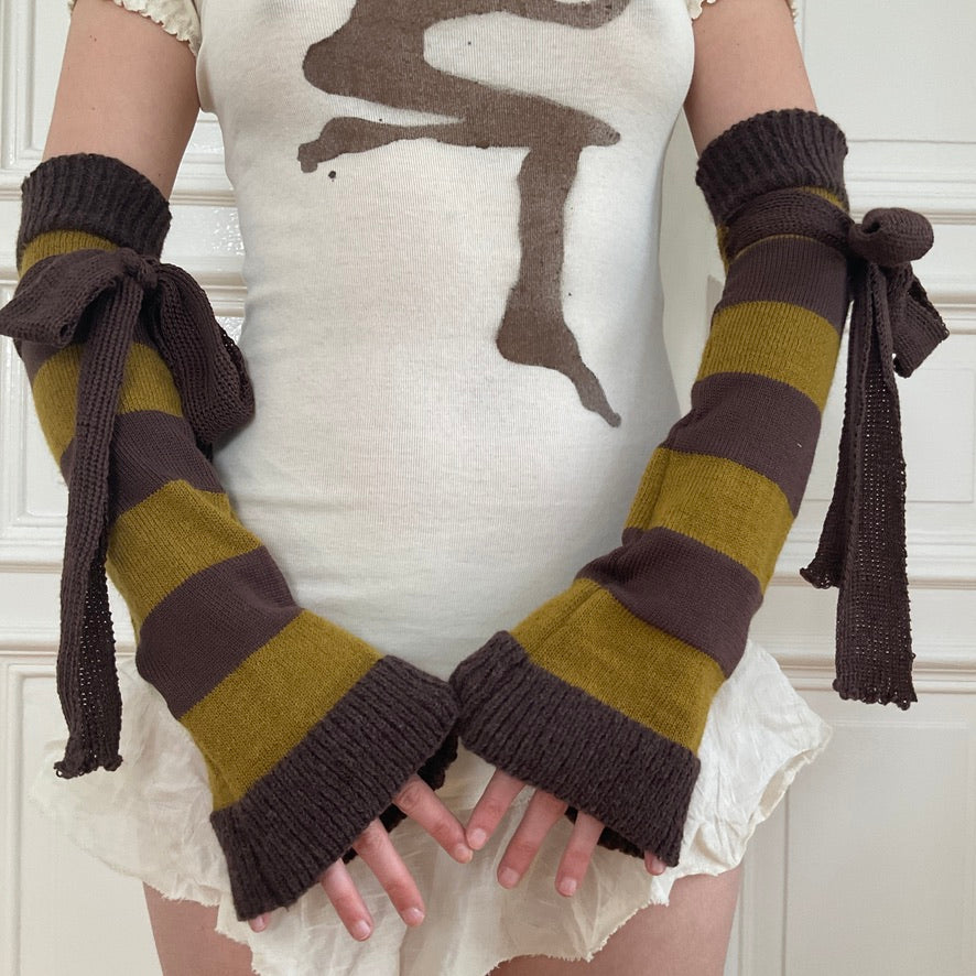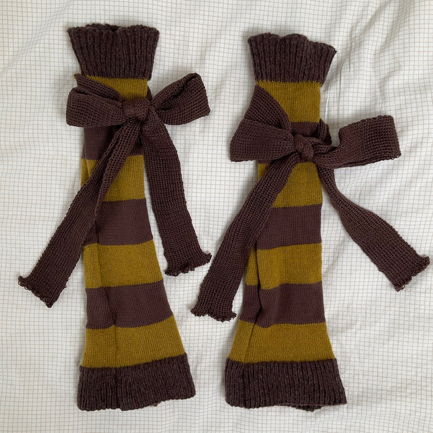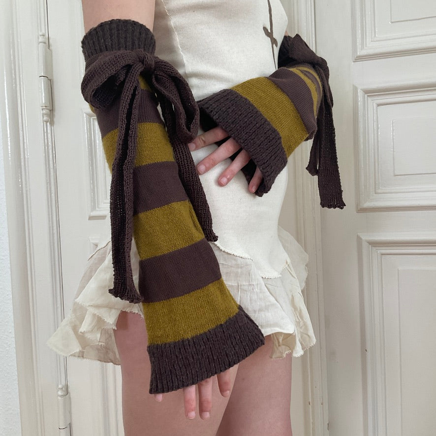 Cute stripey sleeves with ribbons. 100% knit mohair. Handmade in Berlin by Natascha Domino.